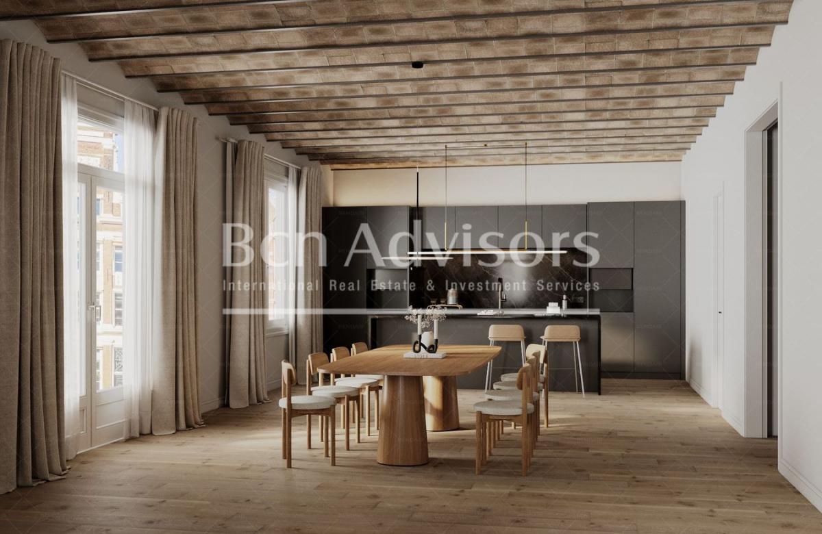 This flat is located in a corner building on Pau Claris street, just one block from Paseo de Gracia. It is one of the most sought-after areas in the Eixample district and in all of Barcelona, right in the heart of the 'Quadrat d'Or'. The surrounding area offers numerous cultural and historical attractions, services, cafes and restaurants, prestigious institutions and excellent public transport links.The property is very spacious, with 231 built interior sqm and 9.65 exterior sqm. It's on the real fourth floor of a century-old building designed by the prestigious modernist architect Enric Sagnier. The living-dining room with integrated kitchen is very spacious, quiet and bright, benefiting from being on the corner, with 2 large windows and a balcony overlooking the street. Next to the kitchen there's a pantry.