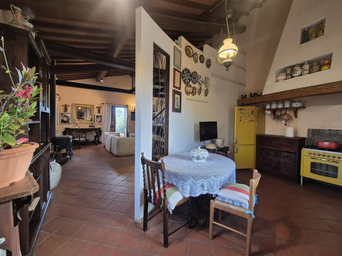 This charming portion of a farmhouse, part of a historic country house with only two residential units, boasts a totally independent access via a private external staircase leading to the first floor. The entrance opens onto an evocative and spacious living room, highlighted by an elegant internal balcony overlooking the main space, adding depth and dynamic flow. The living room includes a partially open kitchen. A short flight of two steps leads to the sleeping area, consisting of two large double bedrooms and a bathroom. A staircase in the hallway leads to the top level: a bright attic, currently used as an artist's studio, a versatile and intimate space perfect as a third bedroom, reading nook, or hobby room. internal conditions are excellent, and heating is autonomous.