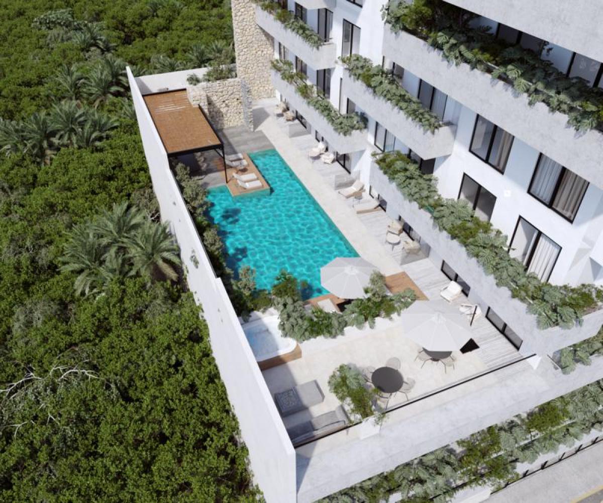 This exclusive development offers apartments ranging from 65 m2 (700 sq ft) to 215 m2 (2,314 sq ft), featuring 1 to 3 bedrooms designed for modern living. Each unit includes 2 to 4 bathrooms, private terraces, and spacious areas like kitchens, dining rooms, and laundry centers, perfect for homeowners or investors. With only 62 residences across 12 floors, the project ensures privacy and breathtaking views of Costa Mujeres' turquoise waters and mangroves.The complex boasts premium amenities such as an infinity pool rooftop, yoga area, jacuzzi, fitness gym, and business center, all crafted to enhance your lifestyle. It also includes 357.28 m2 (3,846 sq ft) of commercial space with 4 rentable shops and private parking for 80 vehicles, adding convenience and income potential.