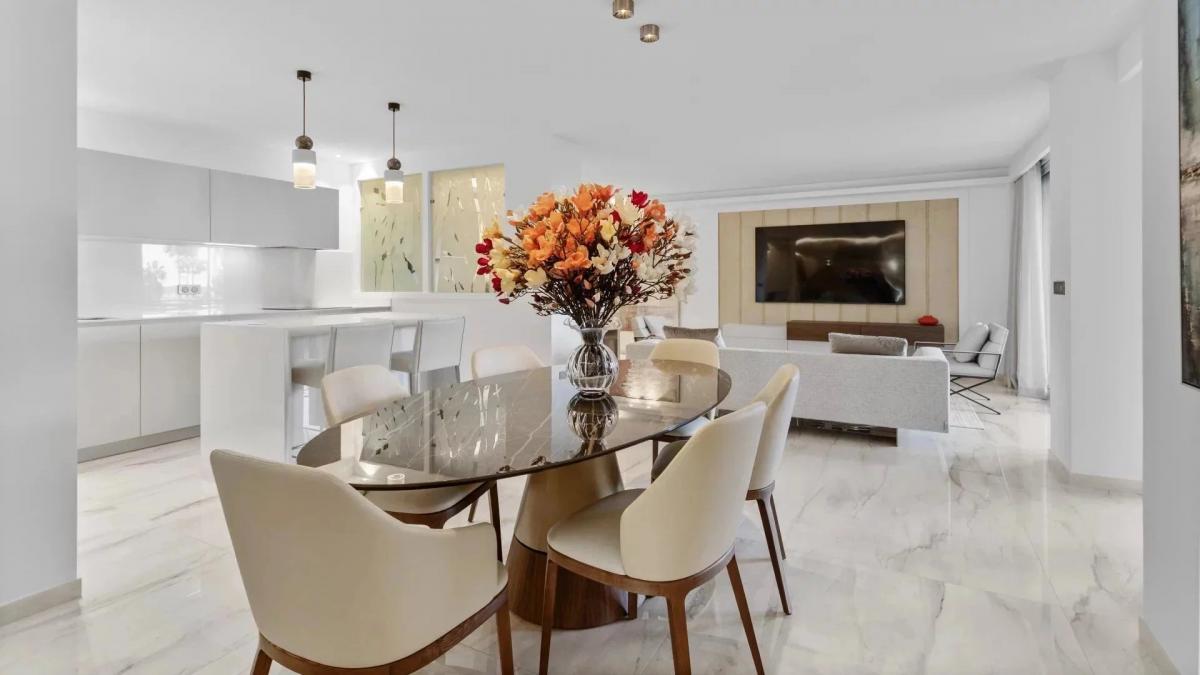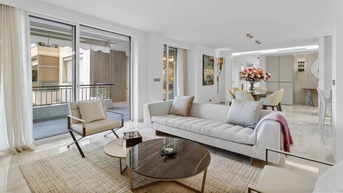 in the heart of the famous Croisette, discover this stunning three-room apartment spanning 127 m2, fully renovated to offer a luxurious living environment with elegant decor.
