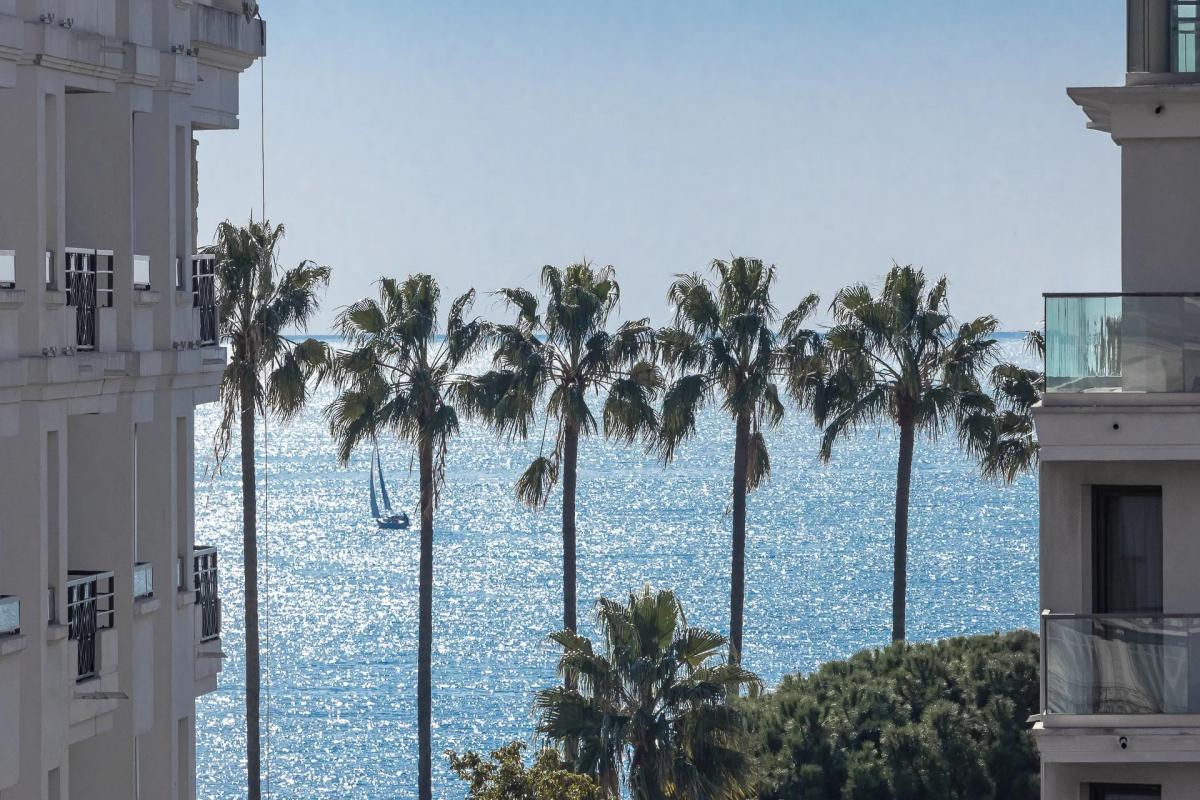 Situated between the Croisette and the rue d'Antibes, just a stone's throw from the Palais des Festivals, this beautiful 4-room flat of 127m2 is in a high floor. it comprises an entrance hall, a beautiful living room with a sea view, an open-plan kitchen with its central island, a terrace, three bedrooms including a master bedroom with shower and bath and another shower room.