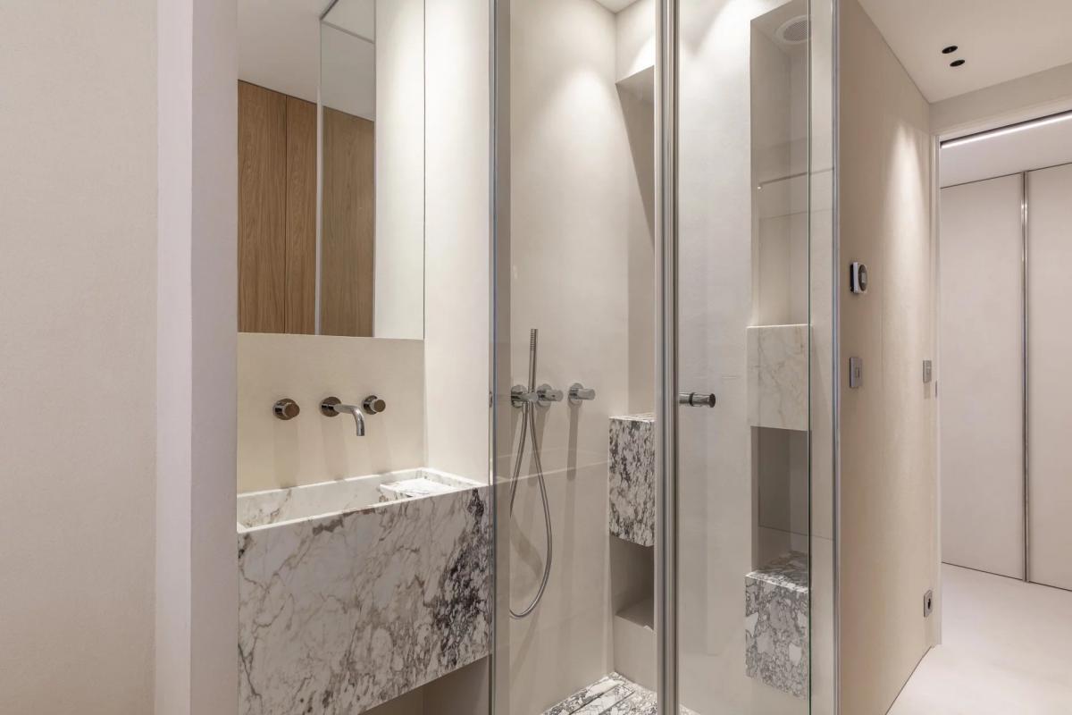 The apartment comprises an entrance hall leading to two bedrooms, each with its own private shower room, a bright living room with fully-equipped open-plan kitchen, and a beautiful terrace with unobstructed sea views.