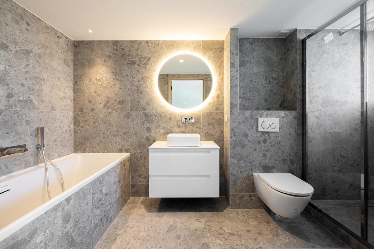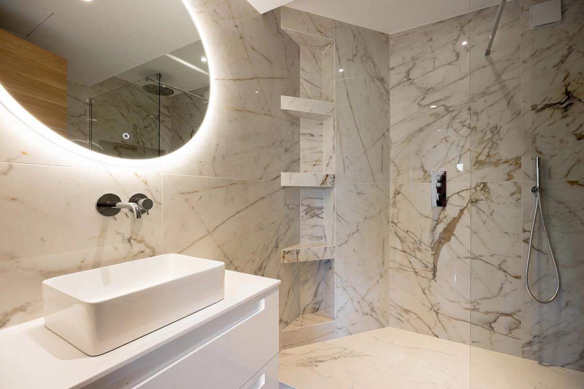 Die Wohnung wurde luxurios renoviert und bietet eine Wohnflache von 92 m2. Sie verfugt uber ein grosszugiges Wohnzimmer mit offener, voll ausgestatteter Kuche, das auf eine schone Terrasse mit herrlichem Meerblick fuhrt. Zwei Schlafzimmer, jeweils mit eigenem Duschbad - eines davon mit WC - sowie ein separates Gaste-WC runden das Angebot ab.