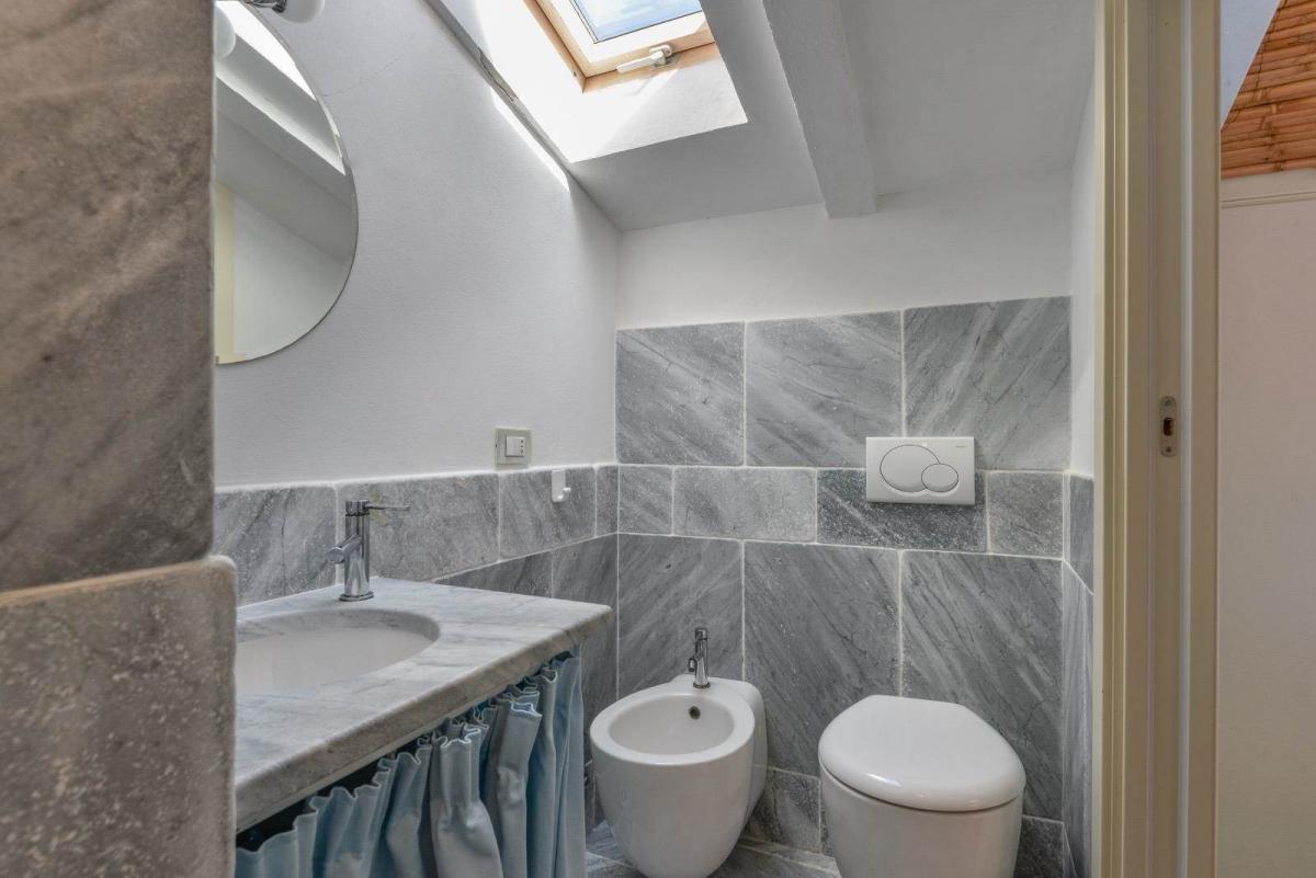 Completely renovated in 2012 and tastefully furnished, the apartment is characterized by high-quality finishes, such as the refined blue Savoia marble tiles, giving the rooms a natural, refined, and contemporary elegance.
