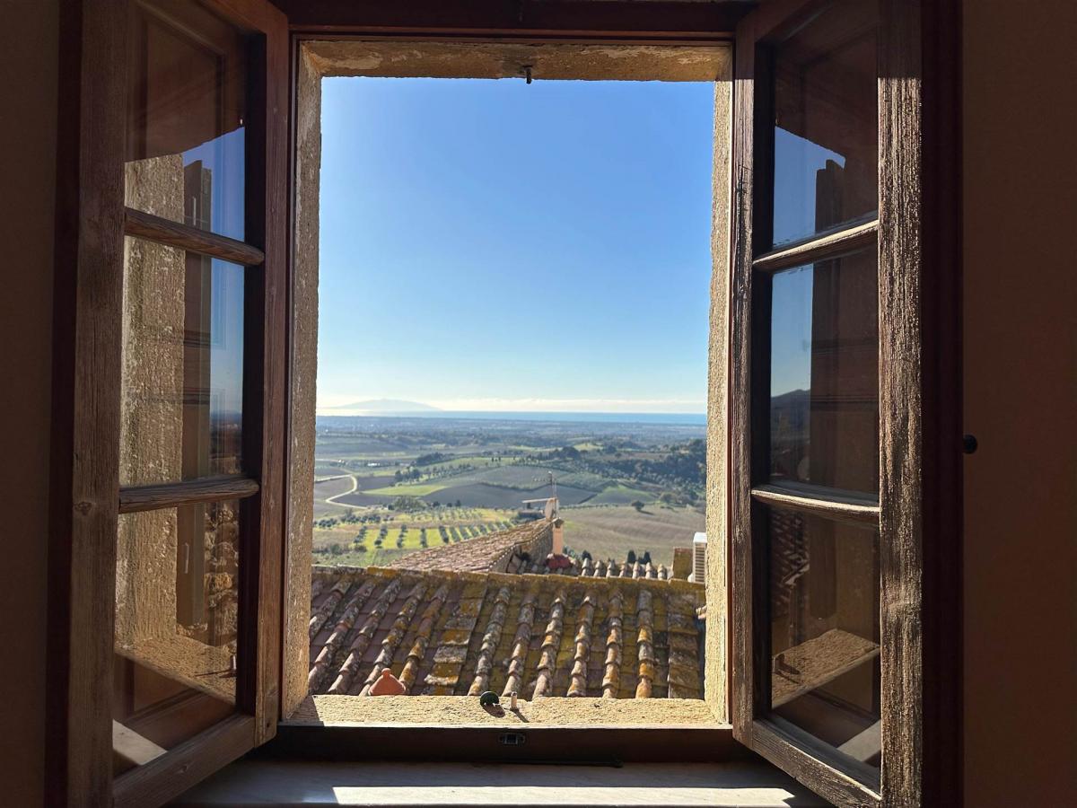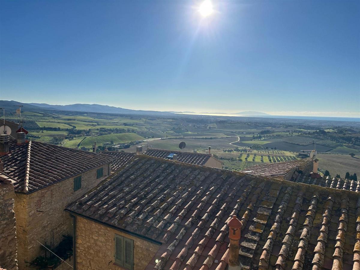 This beautiful complex, located in the heart of Casale Marittimo, consists of a main apartment that has been carefully restored to blend the warmth of ancient buildings with contemporary features. Entering through the main door, you find yourself in an apartment where elegance and comfort harmonize. A stone staircase leads to a stunning living room with two large windows offering breathtaking views of the coast. The original cementine floor is beautifully preserved, adding elegance to the space. From the living room, a French door leads to a small terrace with a storage room, while another door with decorative glass opens to the masonry kitchen, complete with a stone sink.