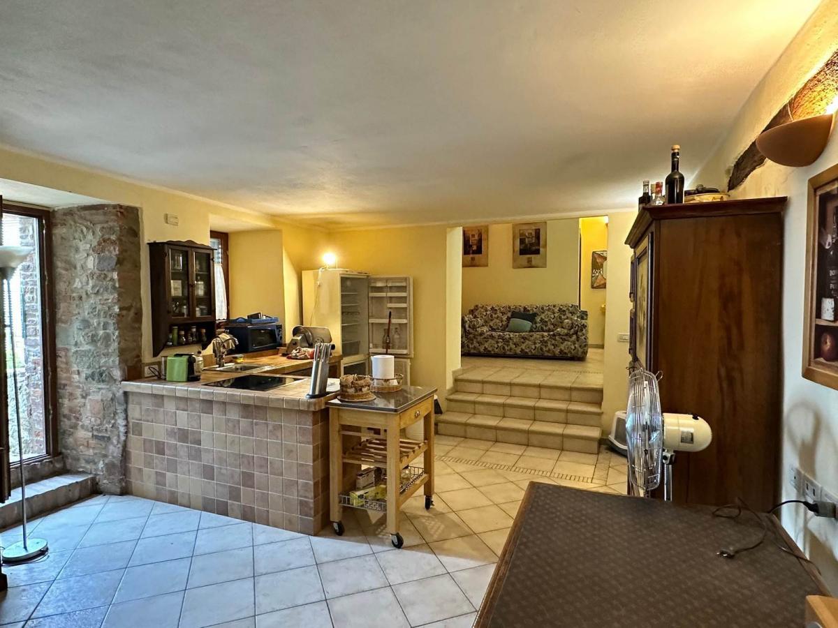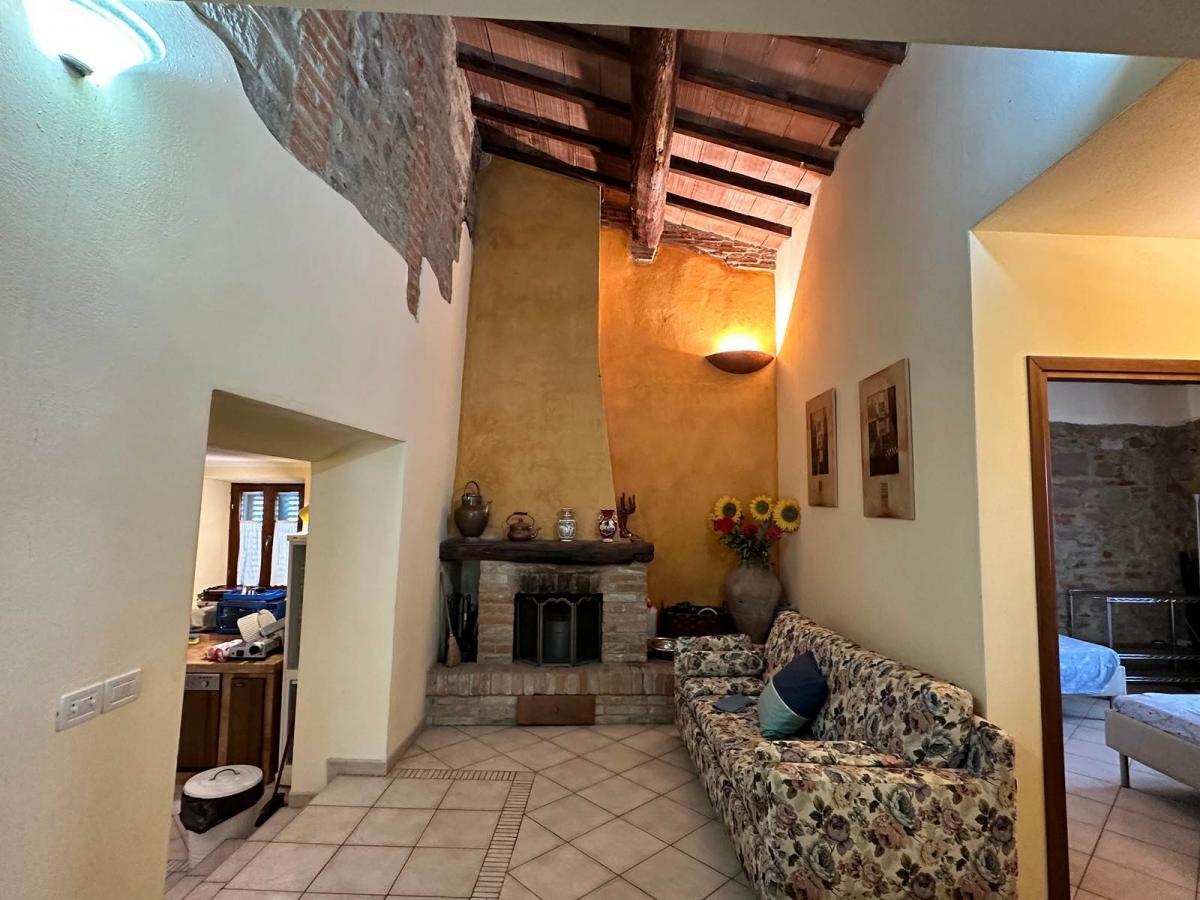 For sale, an independent apartment of about 110 sqm located on the ground floor, in the historic center of the town, in a dominant position with panoramic views. The property features a portico that leads directly into the home, where you'll find a spacious double living room with a fireplace, an eat-in kitchen with a dining area opening onto the private garden of about 5,600 sqm. A hallway and a bathroom with a shower complete the living area.