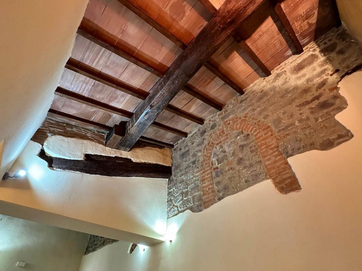 The sleeping area includes two bedrooms, both with panoramic views. One of the bedrooms features an en-suite bathroom and a walk-in closet for added comfort. The apartment is in excellent condition and ready for immediate occupancy, with independent heating, new windows, and double glazing. The roof has been recently replaced, and the interiors showcase elegant details, such as partially exposed stone walls and wooden beam ceilings.