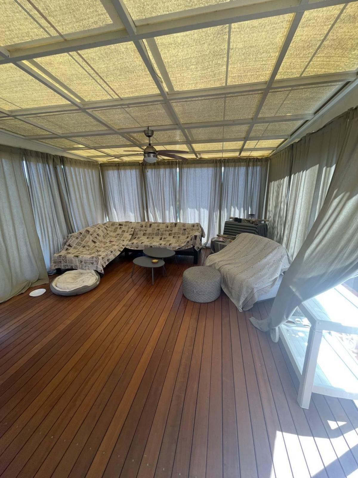 The villa is spread over a single level and features a well-designed layout. The living room with an open kitchen leads to an enclosed veranda, creating a bright and welcoming space. The sleeping area includes three bedrooms and two bathrooms with showers, ideal for hosting family or friends.