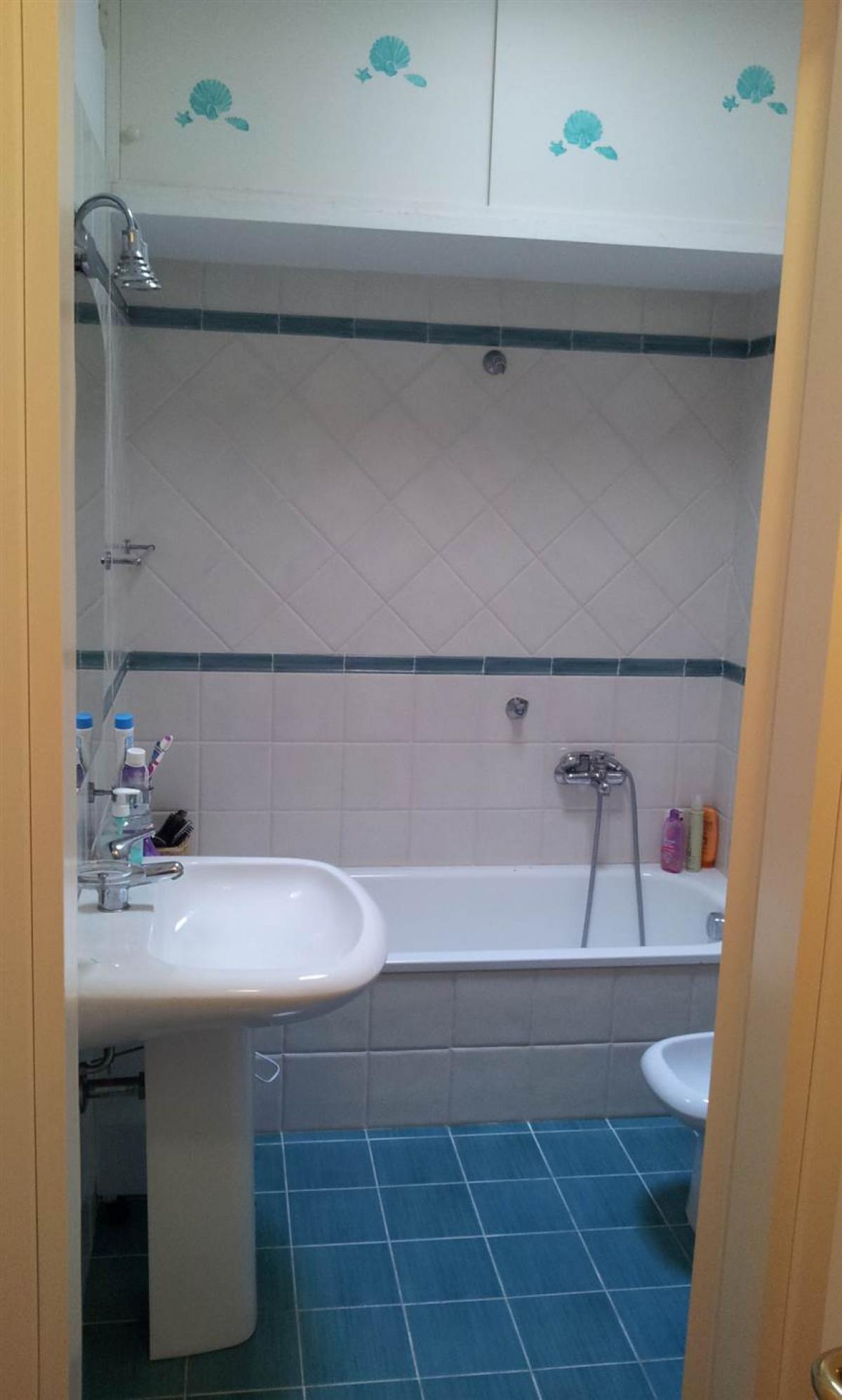 The sleeping area is well separated and consists of a spacious master bedroom with private external balcony, a second bedroom perfect for children or guests, and two bathrooms: one with a practical shower, the other with a bathtub, ideal for unwinding after a day at the beach.
