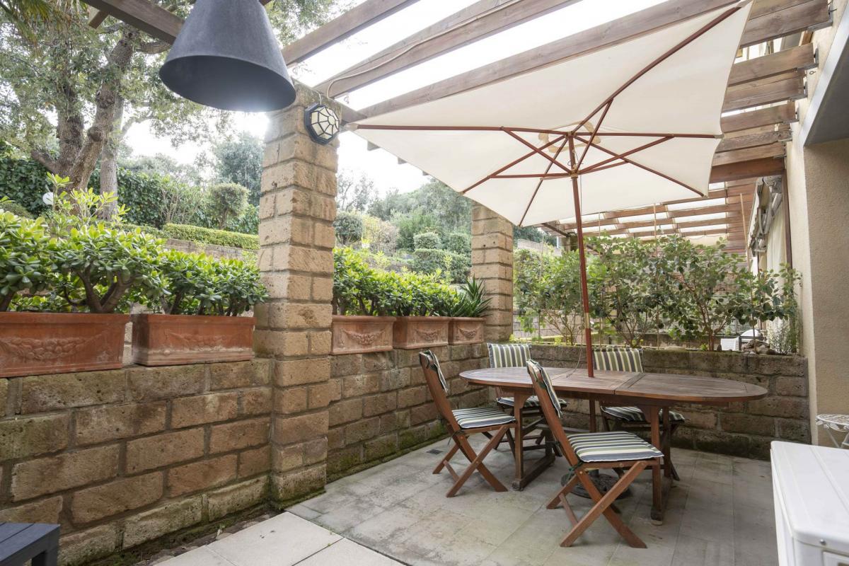From the living area, a private outdoor courtyard opens onto the residence's gardens, offering peace, shade, and complete privacy. Equipped for outdoor dining and relaxation, it also includes two storage areas.