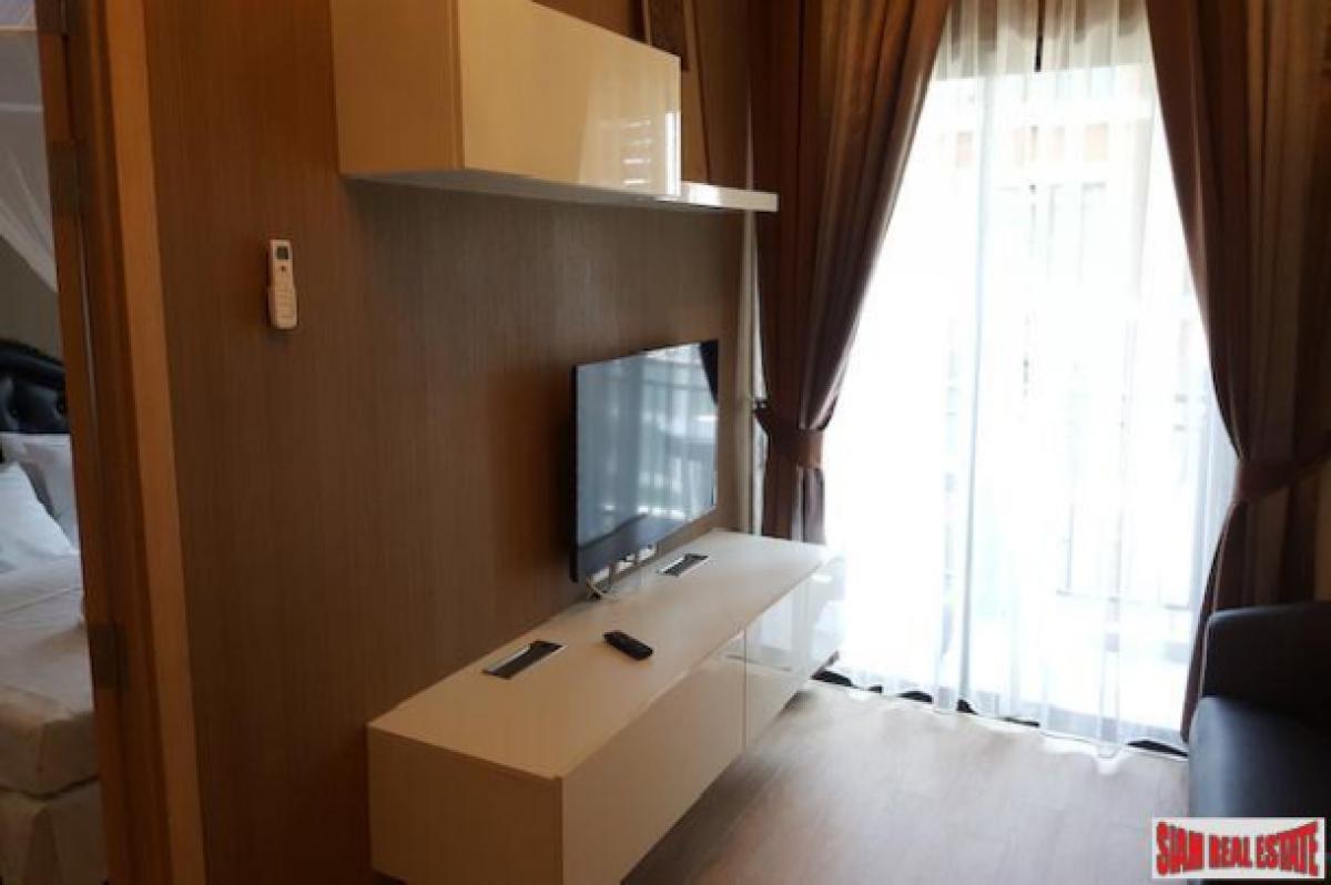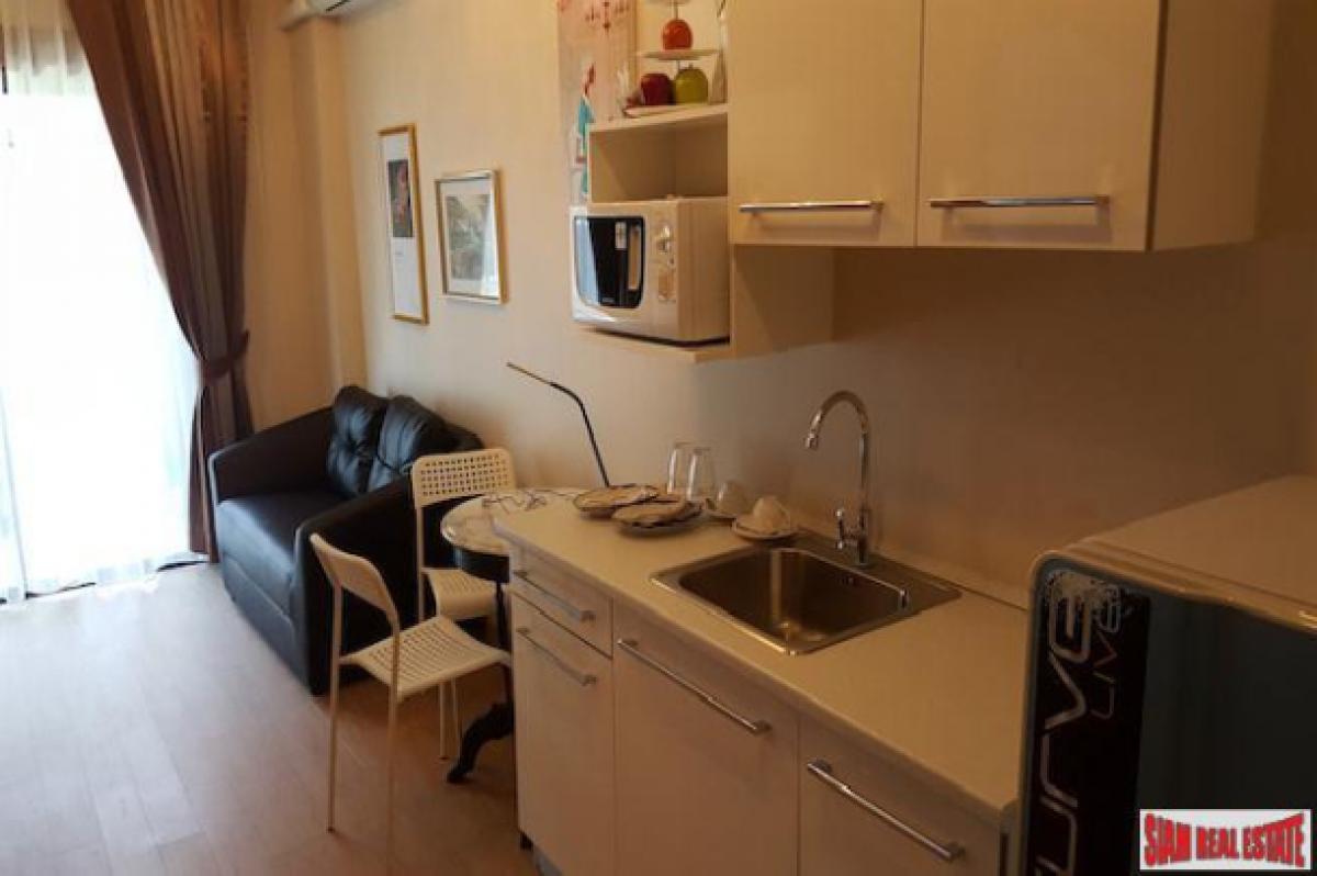TRAMS Condominium 2This is a new one bedroom, one bath condominium is for sale located on Jed Yod-Chang Khian Rd. near shopping centers and restaurants. This apartment is modern and comfortable with a small living room, good sized kitchenette area, dining area and balcony. The living room has a wall mounted flat screen TV and the kitchenette comes with a microwave, refrigerator and there are cupboards for storage. Inside the bedroom is a big bed and another wall mounted TV. A glass enclosed shower and hair dryer are in the bathroom.