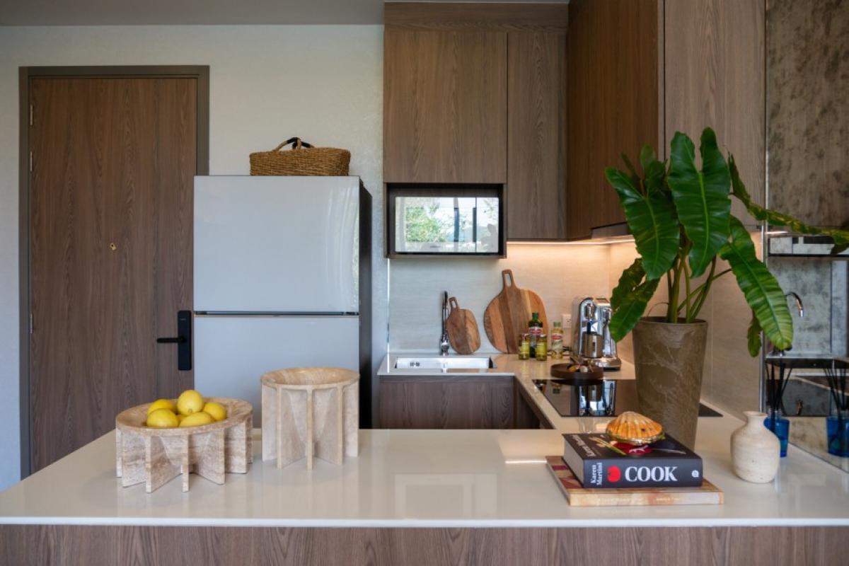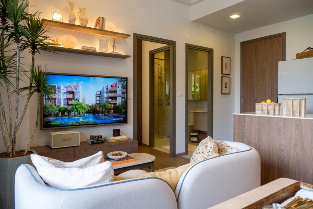 Each unit is meticulously designed to bring the outdoors in, with semi-outdoor living spaces that open up to views of lush tropical landscapes and sparkling swimming pools. Interiors feature a soothing palette of sea foam green and light taupe, evoking a sense of peace and relaxation akin to a luxury cabana on a secluded beach.