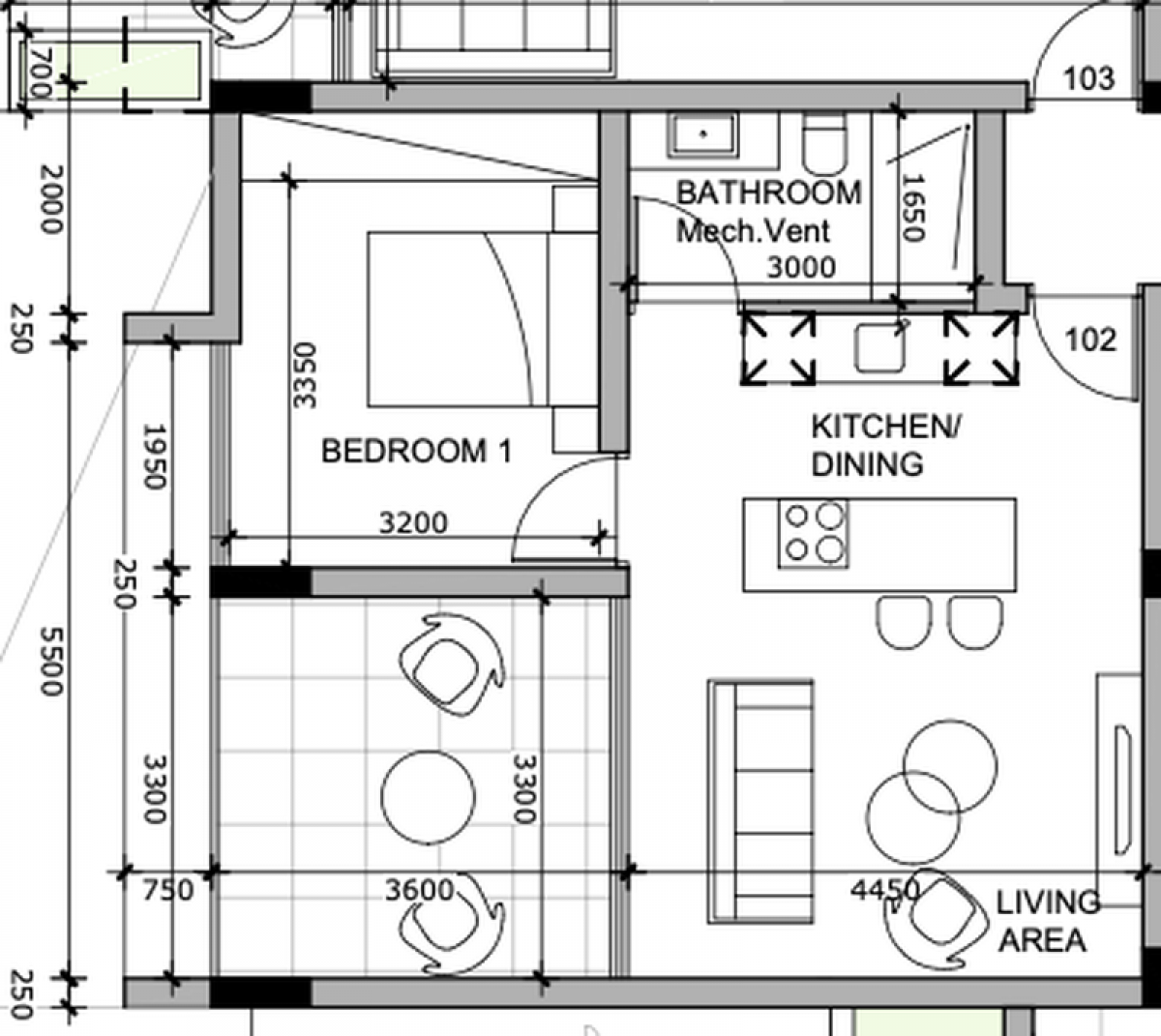 - 50 sqm internal and 11 sqm covered veranda with 1 bedrooms and 1 bathrooms