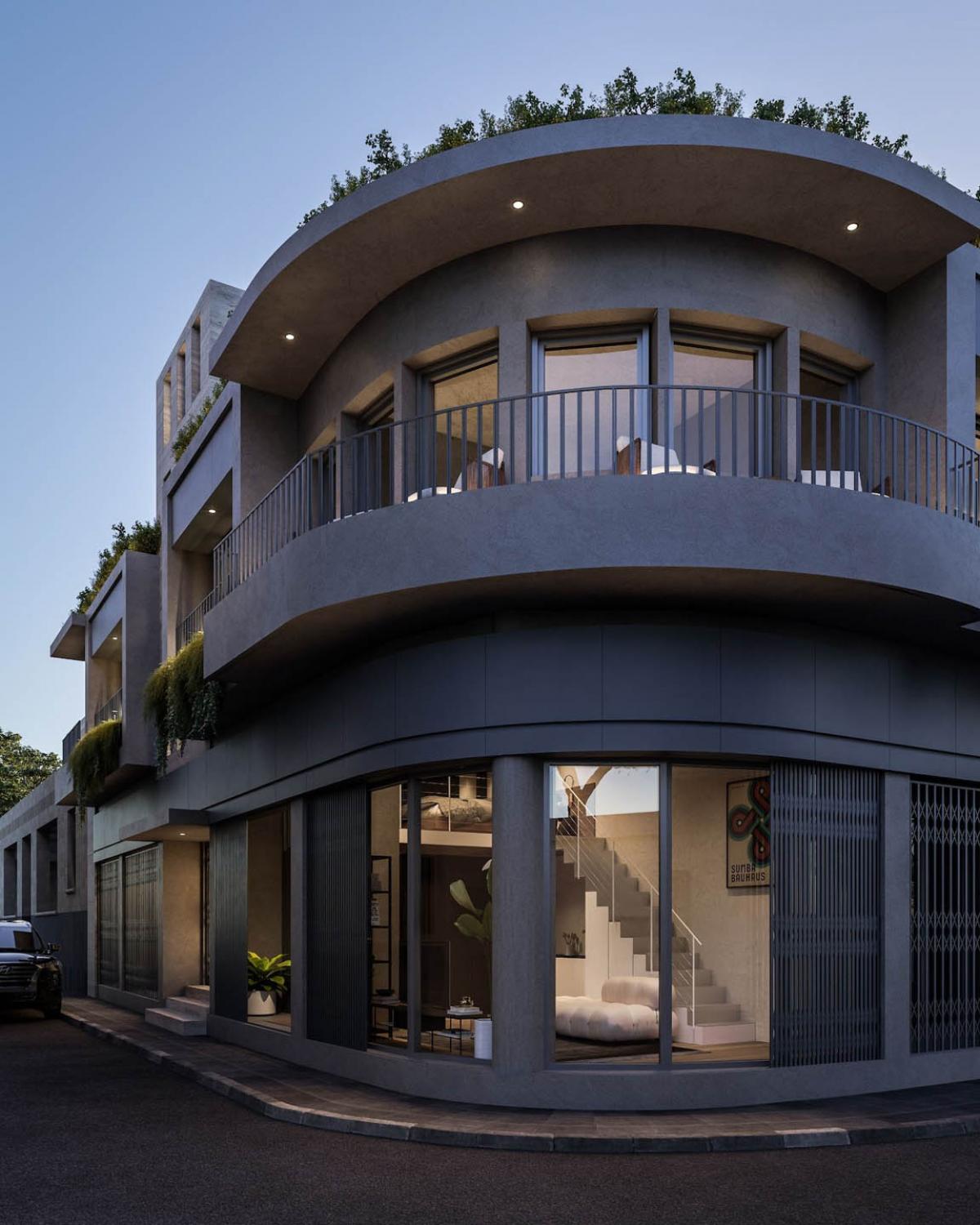 The facade catches your eye instantly—monumental yet graceful. Subtle stonework, sleek surfaces, a vertical rhythm of windows, and a soft curve of balcony corners—all speak to the meticulousness behind every decision. The architecture mirrors the sensibilities of its future residents: understated elegance without ostentation, with an undeniable nod to refined taste.