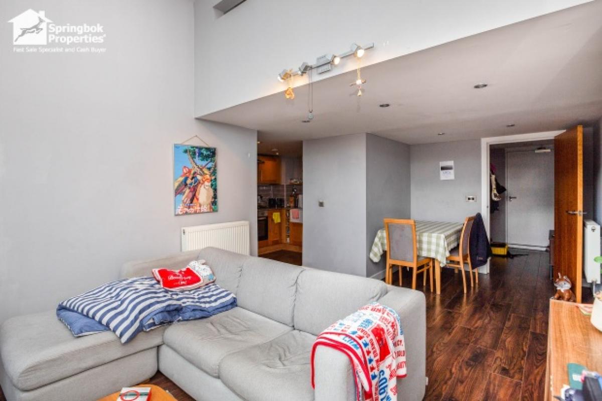 A light-filled and unique fourth-floor mezzanine apartment set within an open atrium, offering spacious open-plan living across two levels. Featuring stylish kitchen fittings, generous living and dining areas, and two flexible bedroom spaces, this home is ideal for first-time buyers or investors seeking a well-connected and characterful urban home. Early viewing is highly recommended.Nestled on the fourth floor within a striking open atrium that bathes the space in natural light, this two-bedroom mezzanine apartment offers a truly distinctive and generous living experience. Upon entry, you're greeted by an inviting hallway complete with a handy storage cupboard and space for a freestanding dryer. The heart of the home unfolds into a fluid, open-plan layout, seamlessly marrying kitchen, dining and living areas. The kitchen features a charming Belfast sink, a stylish SMEG fridge, a five-hob stove, as well as integrated washing machine and dishwasher tailored for both practicality and character. Adjacent, there's ample room for a four-seater dining table and a cosy L-shaped sofa ideal for relaxed social gatherings.