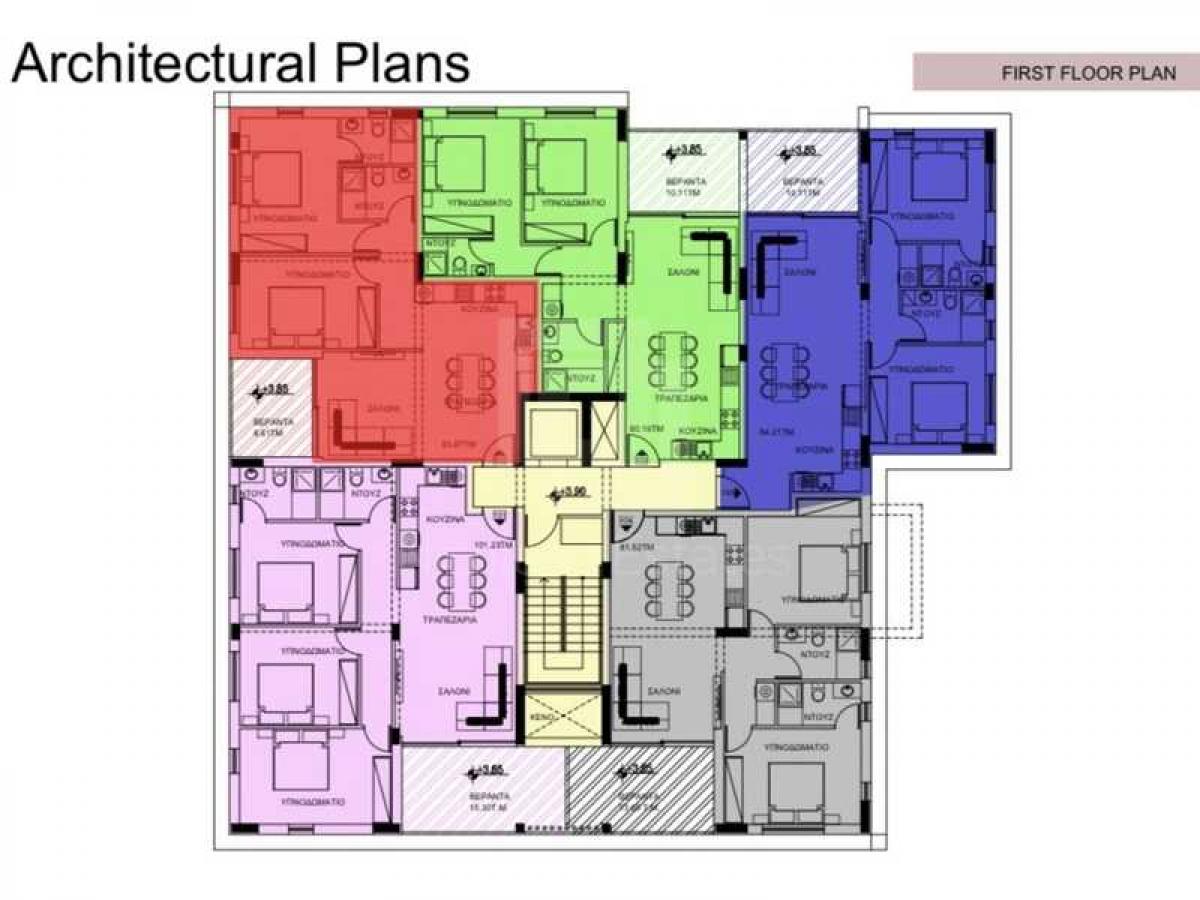 Διαμέρισμα 105 (160.000 συν ΦΠΑ): 84,21τμ εσωτερικός χώρος, 10,11τμ καλυμμένη βεράντα, 2 υπνοδωμάτια, 2 μπάνια, 1 καλυμμένος χώρος στάθμευσης και 1 αποθήκη.