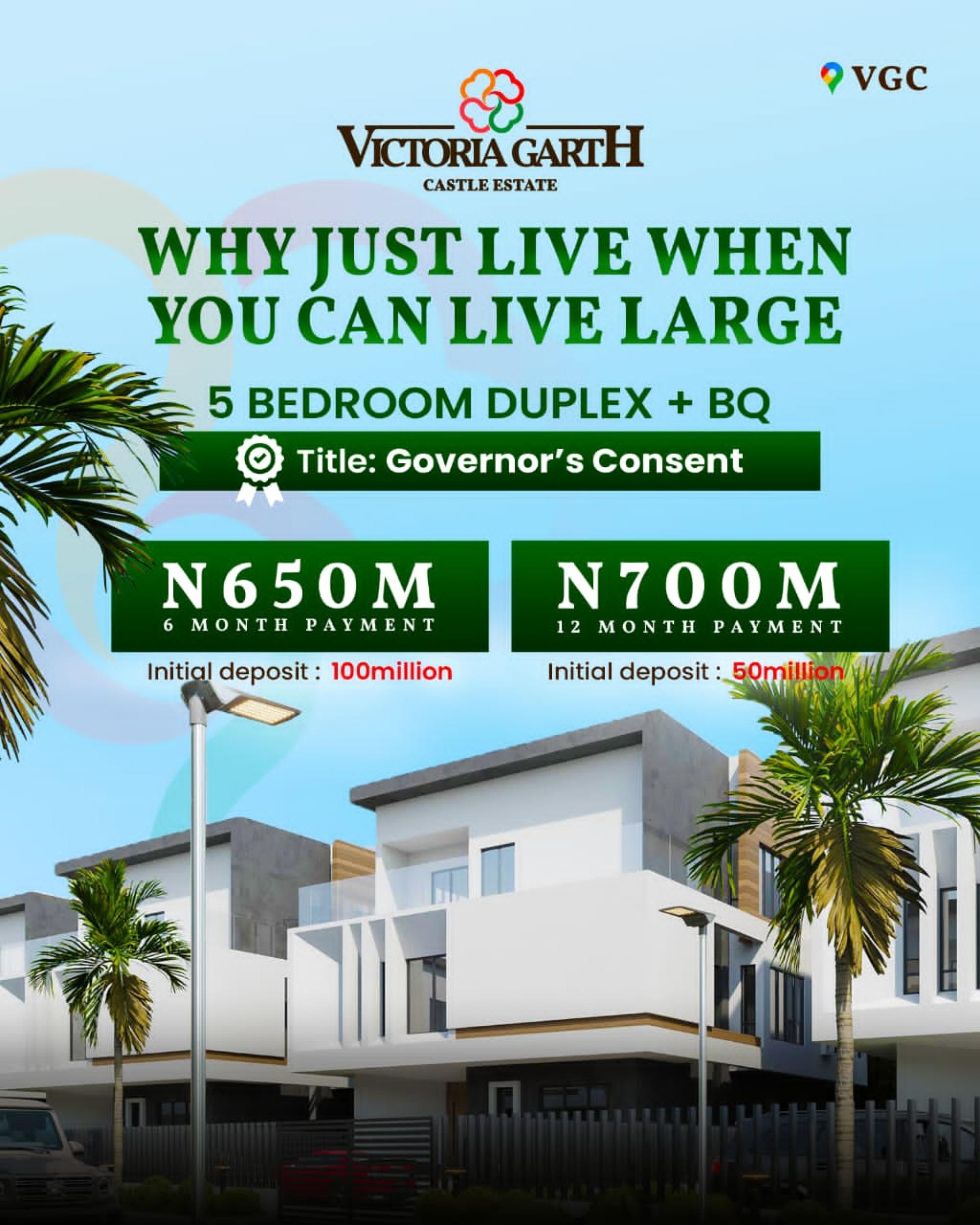 2025 UPDATED LISTING. Own a Piece of Pure Elegance at VICTORIA GARTH CASTLE. Discover the true definition of luxury living , where sophistication meets serenity. This exclusive estate is crafted for those who desire nothing but the finest in the heart of VGC Lekki Lagos. location (https://maps.app.goo.gl/oAWLiA7V5yCREb6T6) *Estate Amenities: • Private Swimming Pool • 24-Hour Security • CCTV Surveillance • Ample Parking Space • Modern Drainage System • Well-Paved Access Roads Luxury is timeless, but this opportunity isn’t. Contact us today on +2347069652227 for the project brochure and more information