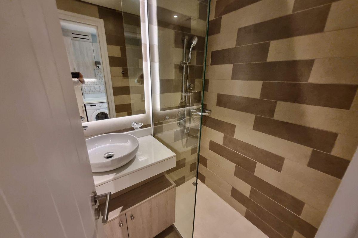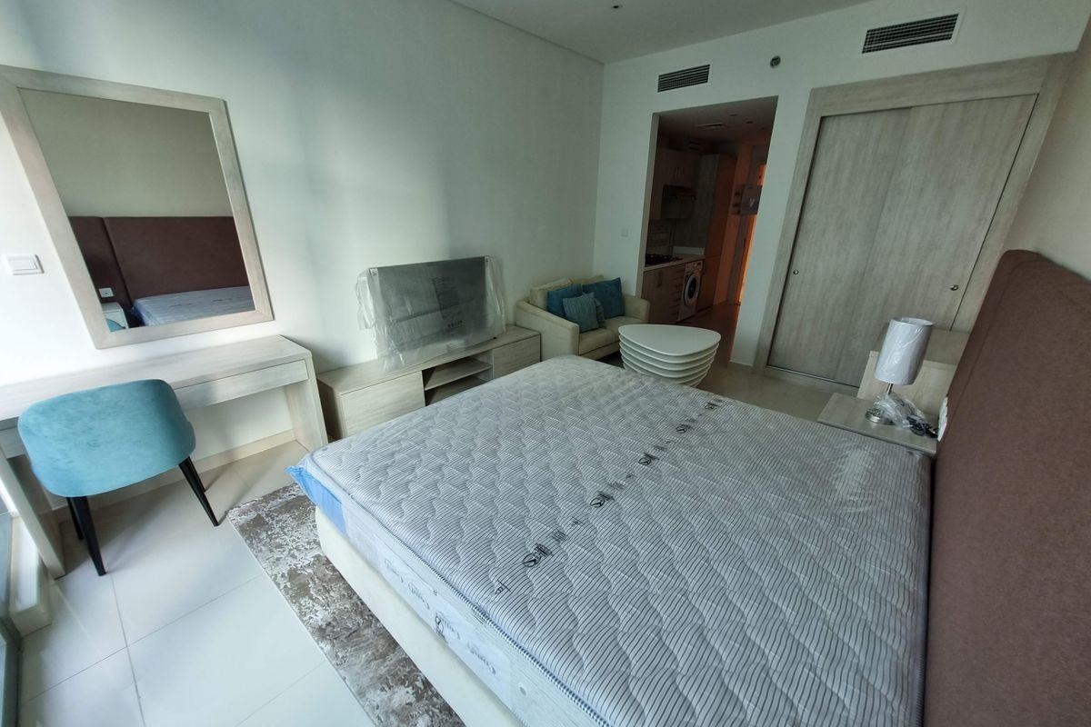 Enter this stylish studio to find an open living area that seamlessly integrates with a sleek, fully equipped kitchen. Large windows flood the space with natural light, offering breathtaking sea views. The sleeping area is cleverly designed for privacy, while the bathroom boasts contemporary fixtures and finishes.