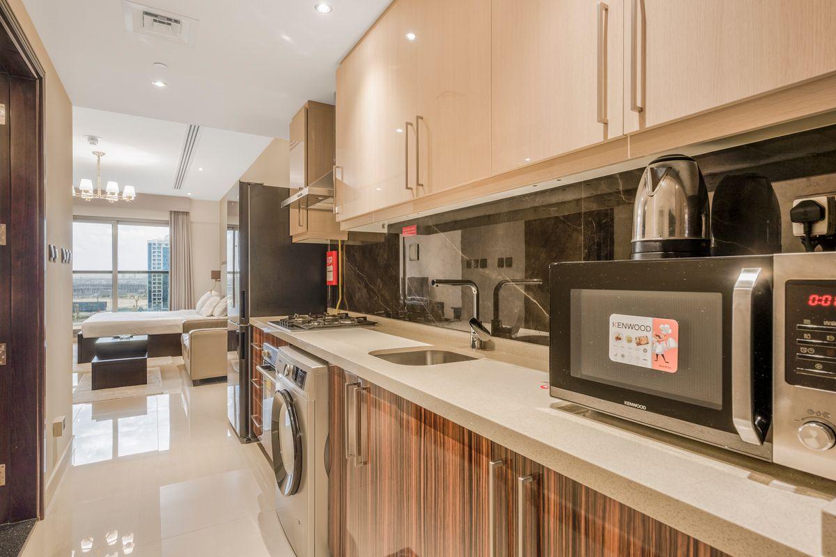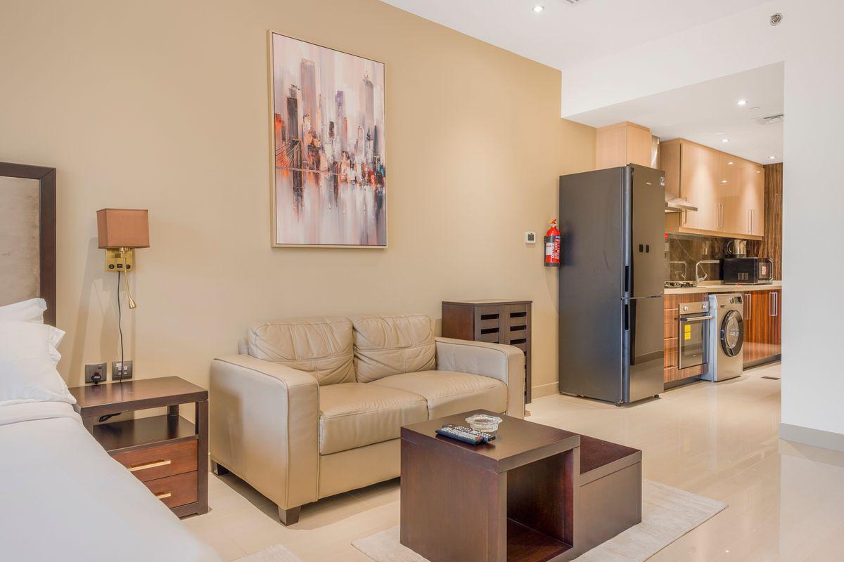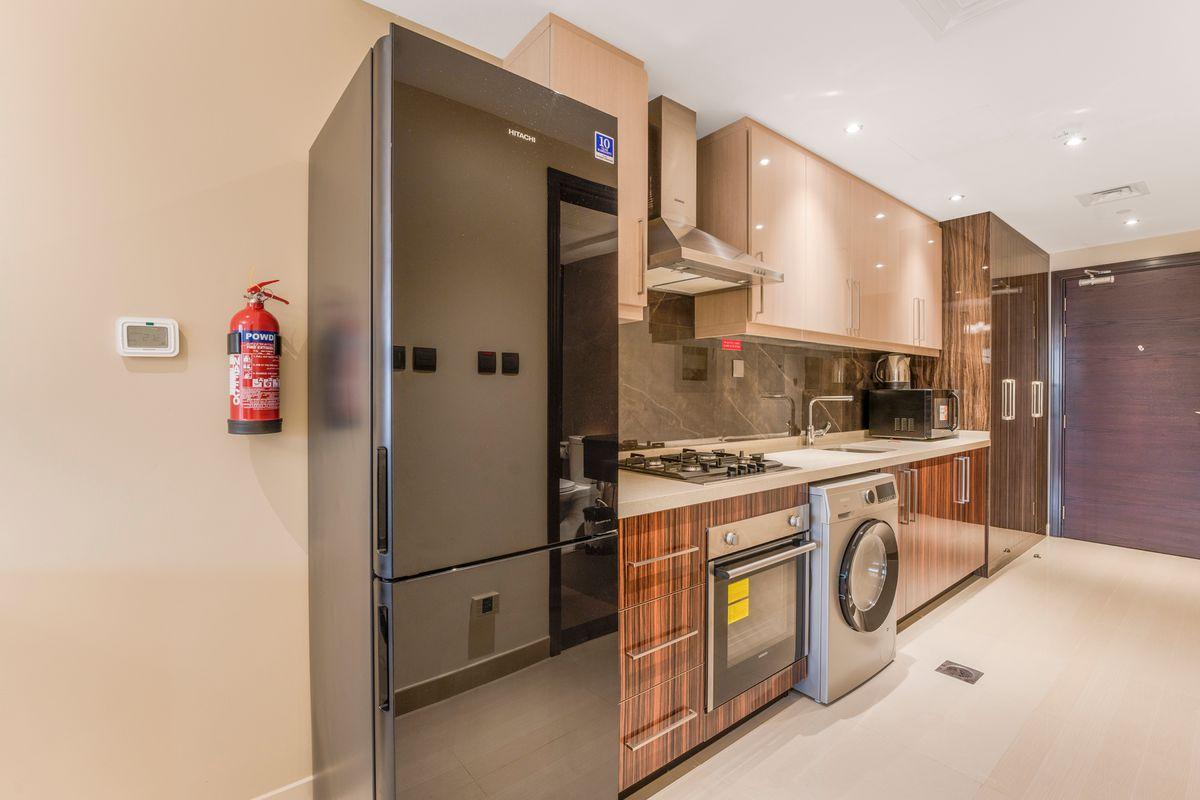 Experience comfortable living in this stylish studio apartment at Elite Downtown Residence, Downtown Dubai. The space features a thoughtfully designed layout with a fully fitted kitchen equipped with modern appliances, built-in wardrobes offering ample storage, and a sleek bathroom. The large windows provide stunning views of the vibrant cityscape.