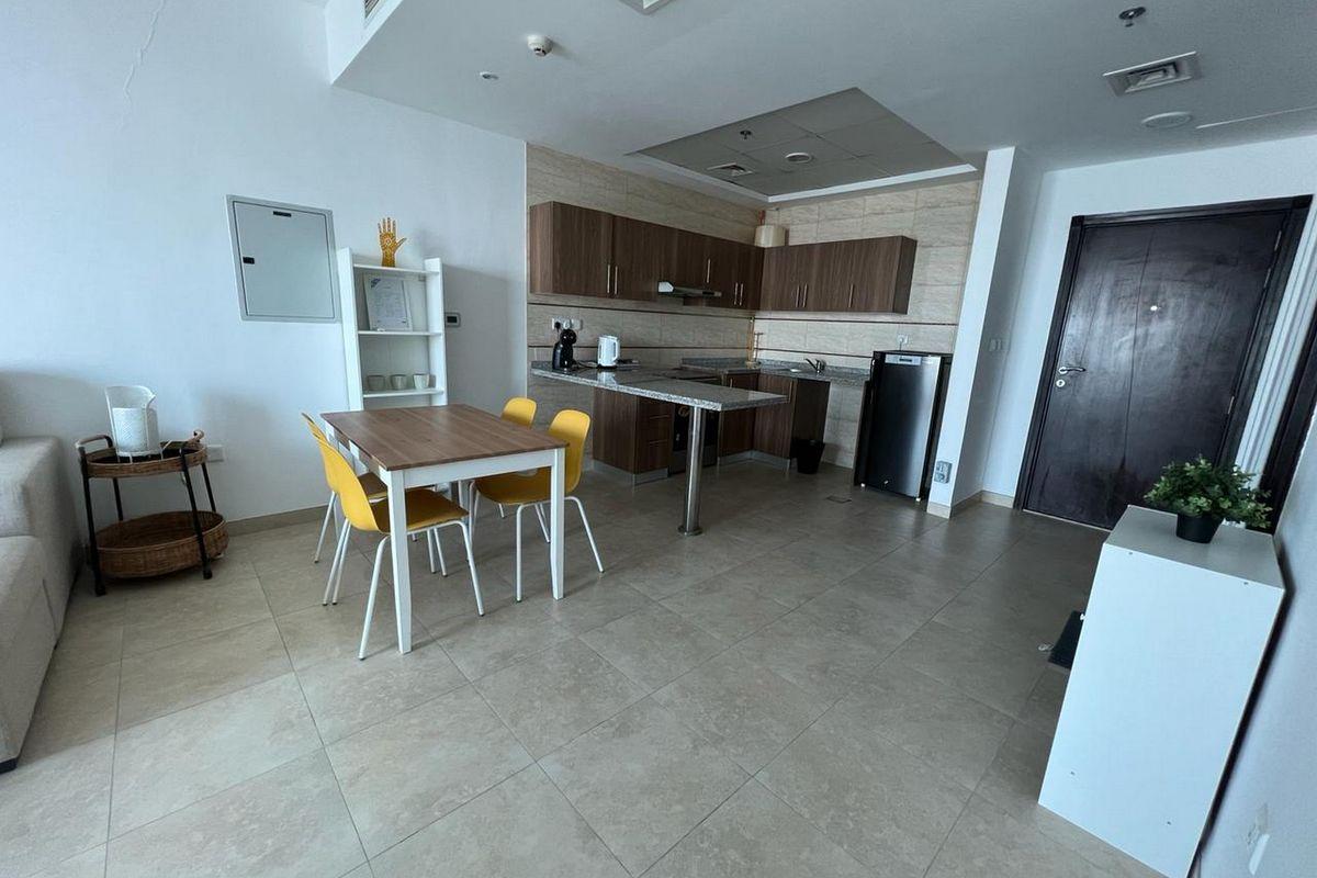 Step into this modern 1-bedroom furnished apartment in Dubai Star, featuring an open-plan living and dining area with large windows offering serene community views. The kitchen is fully equipped, and the bedroom includes built-in wardrobes. The sleek bathroom complements the overall contemporary design, perfect for comfortable living.Property Features