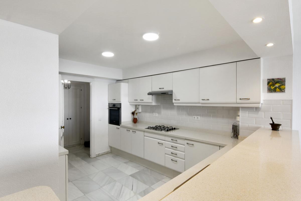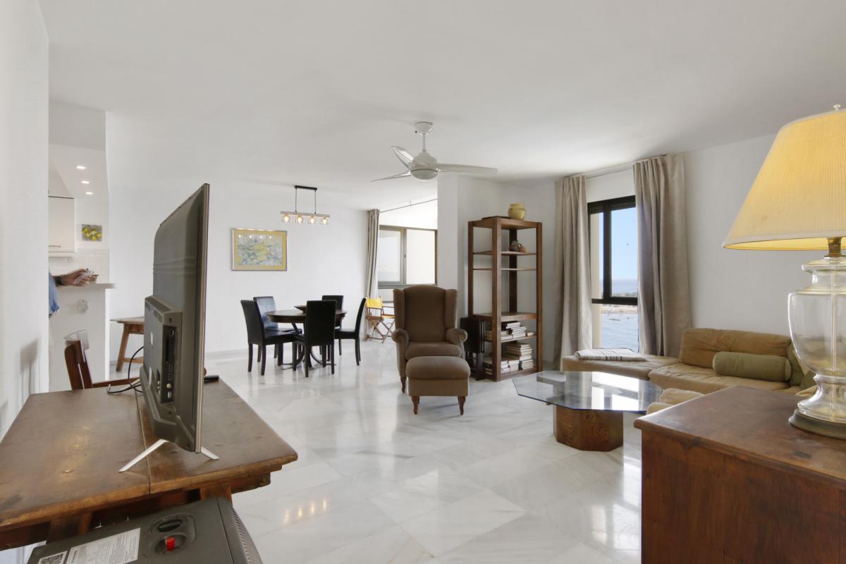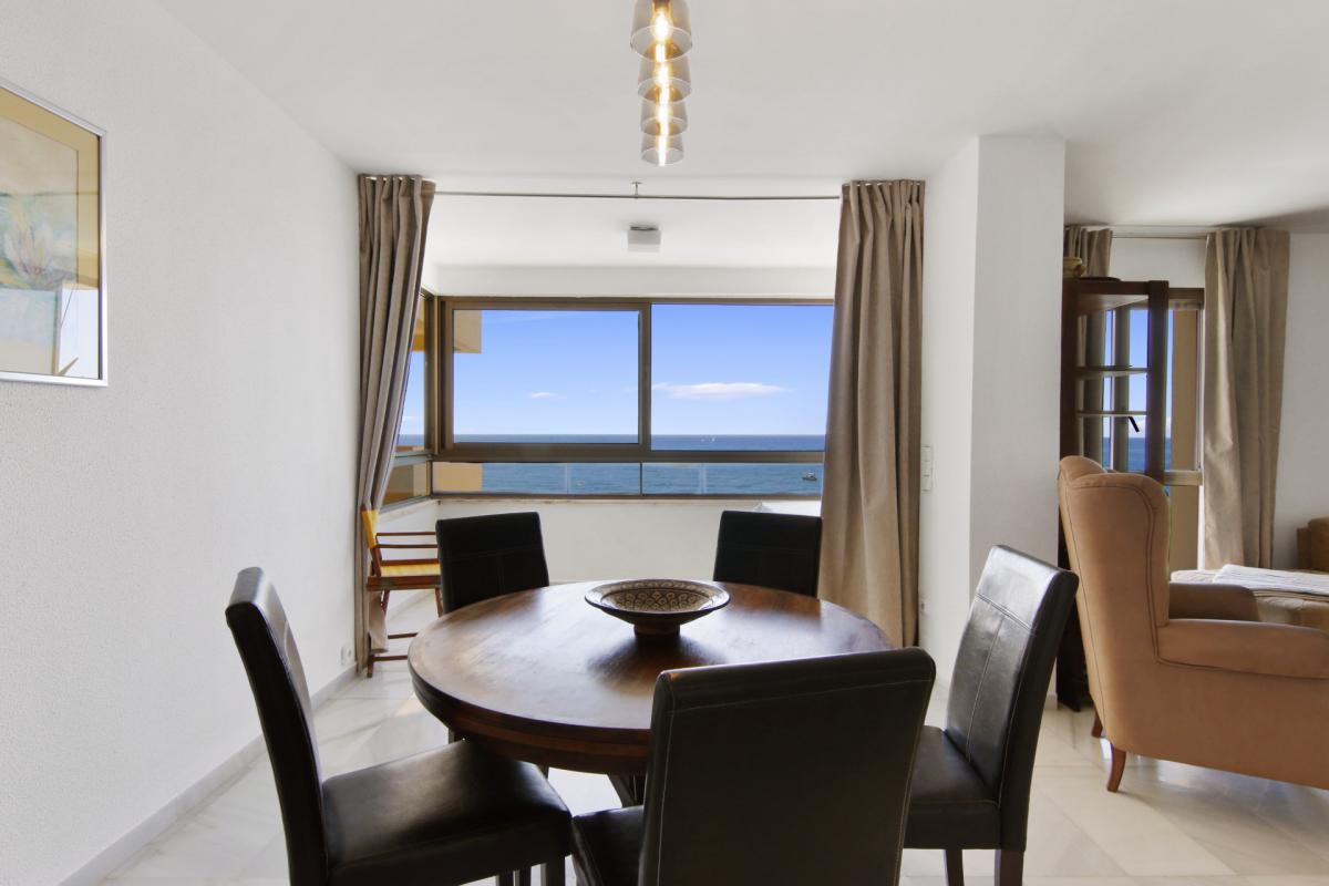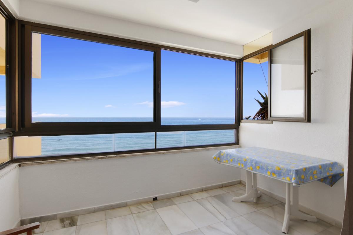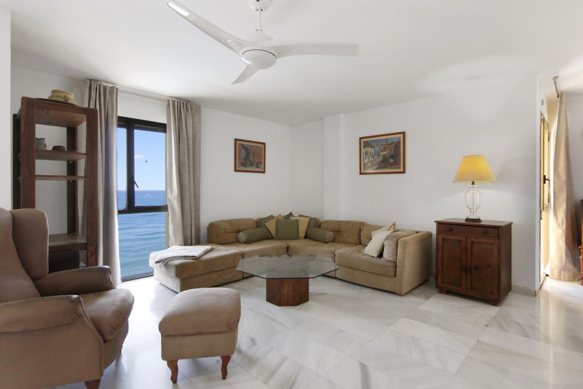 Welcome to this spacious third-floor apartment, perfectly positioned in one of Esteponas most desirable and established beachfront communitiesVeramar. With spectacular front-line views across the Mediterranean to Gibraltar and even Morocco on most days, this is a rare opportunity to own a prime coastal property just steps from the port and Playa del Cristo.From the moment you enter, a welcoming foyer connects you to the heart of the home. To the left, an expansive open-plan kitchen flows seamlessly into the dining and living areas, where a large covered terrace invites you to soak in the sweeping sea views. The bright and airy living room is further enhanced by additional windows framing the coastline.A hallway leads to the private sleeping quarters, where you'll find a spacious master suite complete with its own bathroom and generous dressing room. A second bedroom is served by a full guest bathroom just across the hall. The flexible layout of this apartment allows for the easy addition of a third bedroom, offering great potential for customisation.This home also includes a private underground parking space and enjoys the security of a 24-hour gated complex. Veramars beautifully maintained gardens and beachfront pool provide the ultimate in relaxation, while direct access to the seaside promenade makes walking to the marina or beach effortless.With top-tier golf courses, shopping, Marbella just 20 minutes away, and Malaga airport under an hours drive, this is coastal living at its bestwhether for full-time residence or as a luxurious holiday escape.