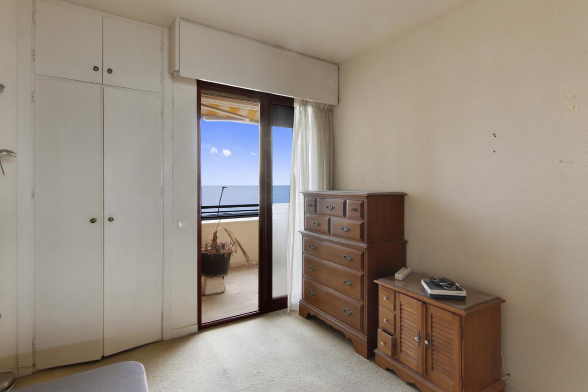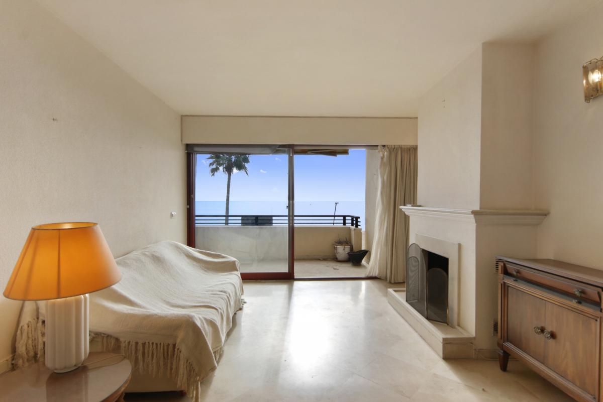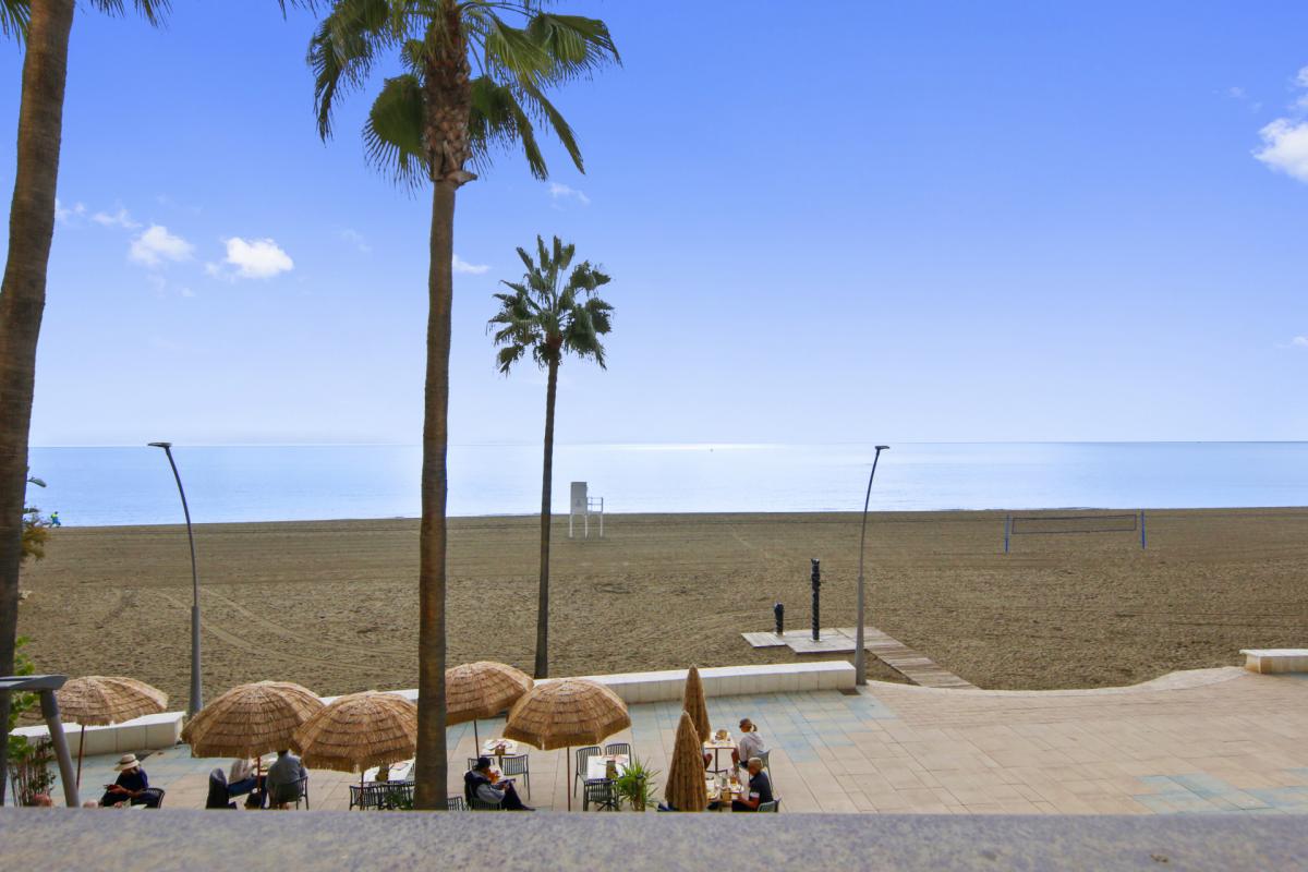 This two-bedroom front-line beach apartment is located in the heart of Estepona and has everything the town can offer within walking distance. As you enter, you are immediately captivated by the direct sea views: the apartment could not be closer to the ocean.Upon entry, you have the spacious semi-open plan kitchen directly ahead, with windows facing the building's interior patio. On your left is the guest bedroom with a private bathroom. To your right is the spacious living and dining area, all enhanced by terrace access. Finally, next to the living room is the main bedroom, with an ample wardrobe and a private bathroom, and direct terrace access. From the terrace, you can enjoy the spectacular sea view.The building offers commodity thanks to the lift and includes a communal solarium that offers a private swimming pool, a paddle court, and a spacious lounging area, all with breathtaking sea views from where you can admire the coastline, the promenade, and even the rock of Gibraltar and the African coastline.Within walking distance to the entire town's charm, the Andalucian Old Town streets, the front line bars and restaurants, the shopping options on Calle Terraza, and everything else you could think of, the location is truely hard to beat. You are a short drive away from multiple golf courses, schools, and hospitals. Marbella is