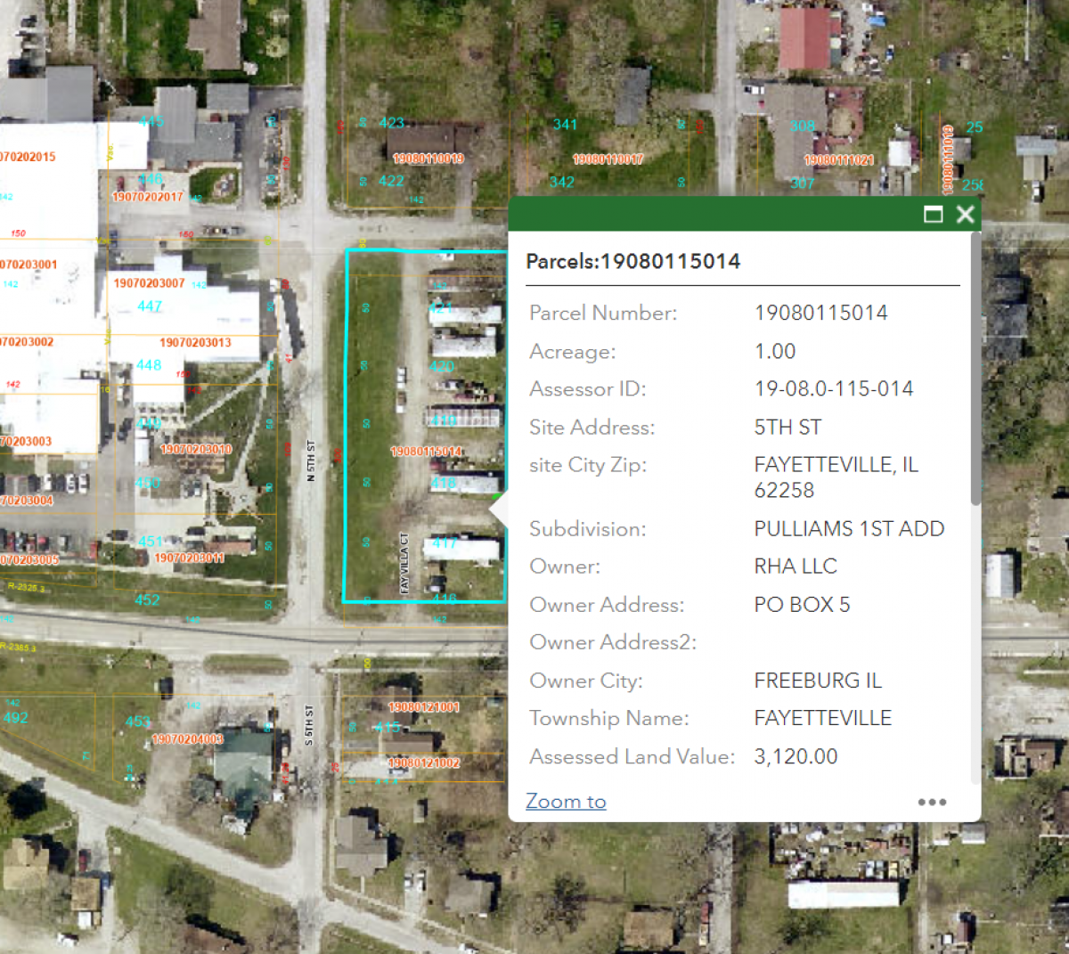 Great starter or investment property in the City of Fayetteville. Has been a very successful rental property for the last 4 years. Cash Price: $4,000.00 Processing Fee: $200.00 Property Address: 5th St, Fayetteville, IL 62258 Click here to map this address Parcel Number: 19080115014 Account Number (Mobile Home): 15-00041 Lot Number: 3 Acreage: 1 (Whole lot not included) Dimension: 500 x 1 Zoning: Residential Type: Mobile Home Legal: PULLIAMS 1ST ADD LOT/SEC-417 LOTS 416 THRU 421 DOC A02602536