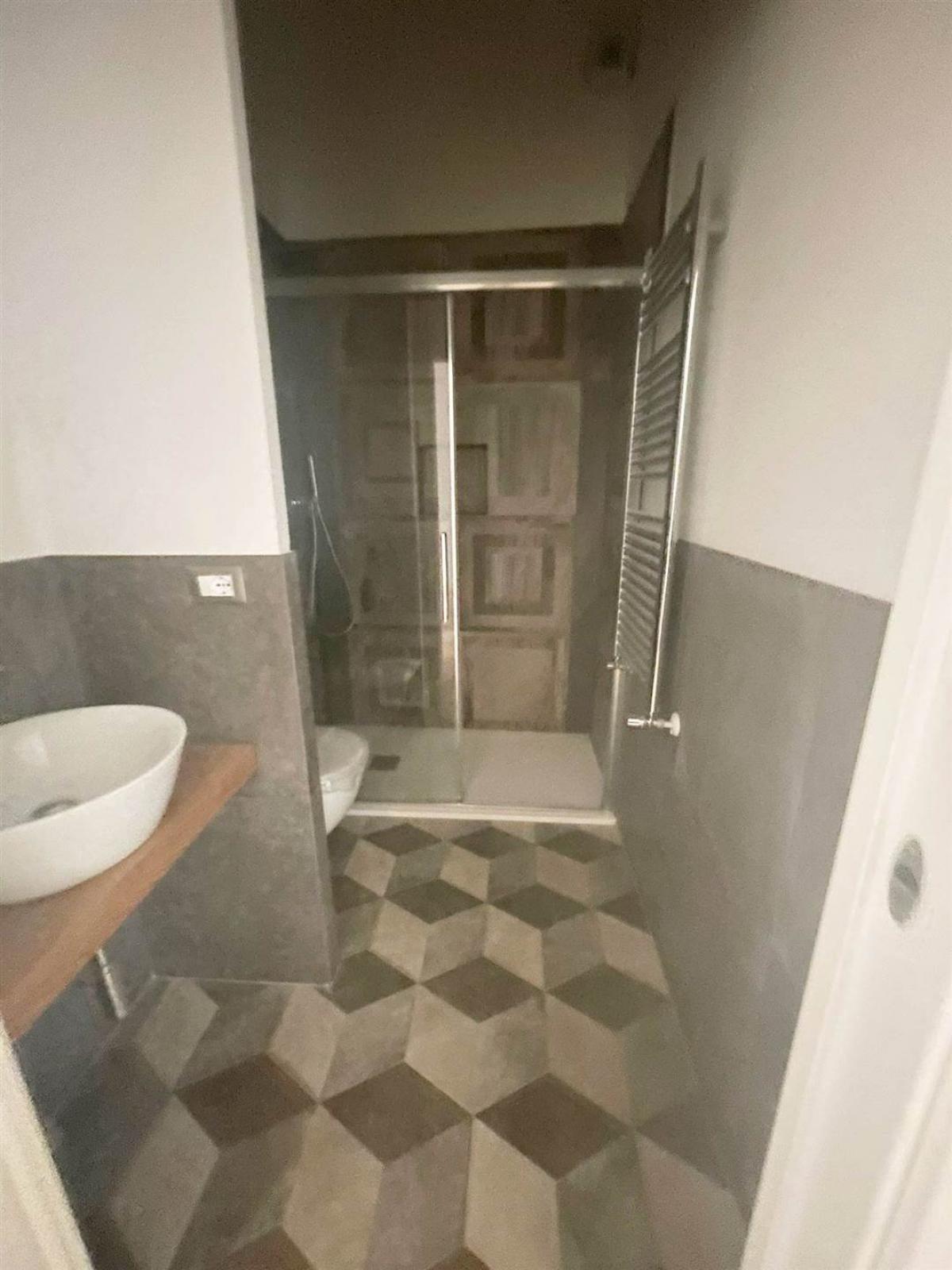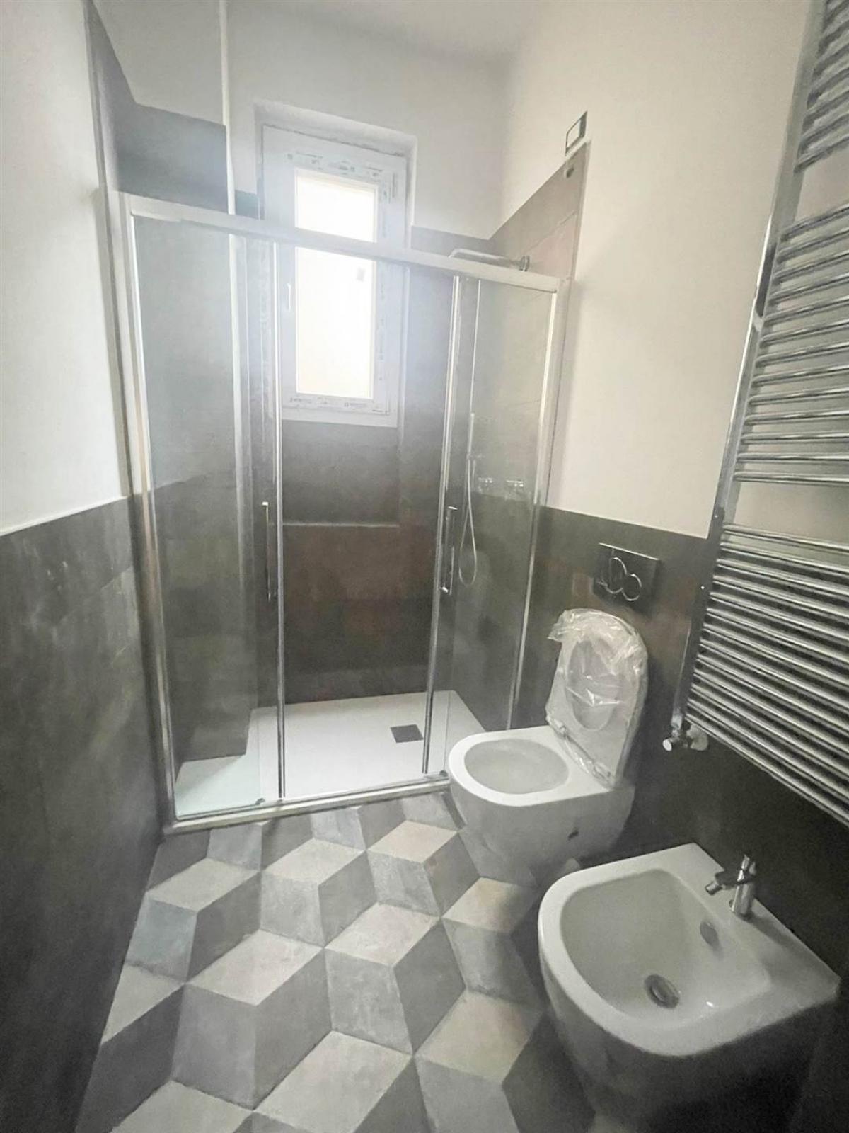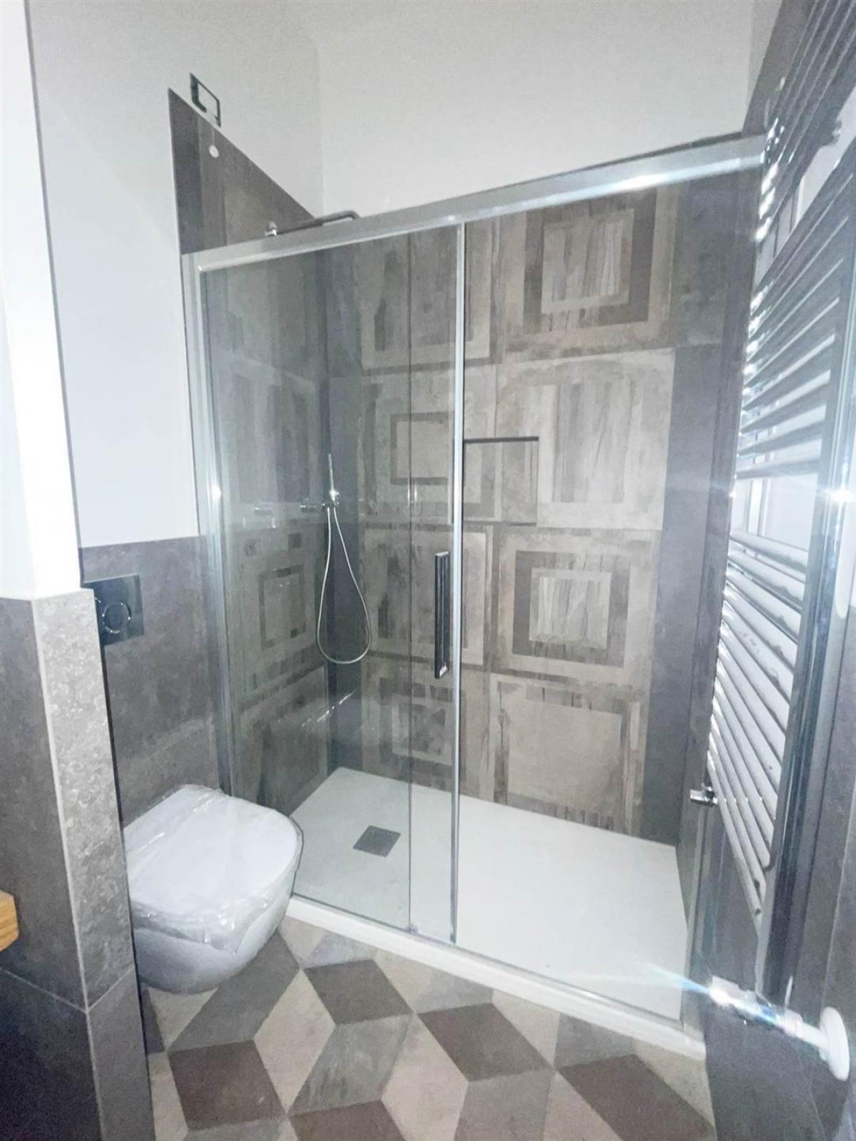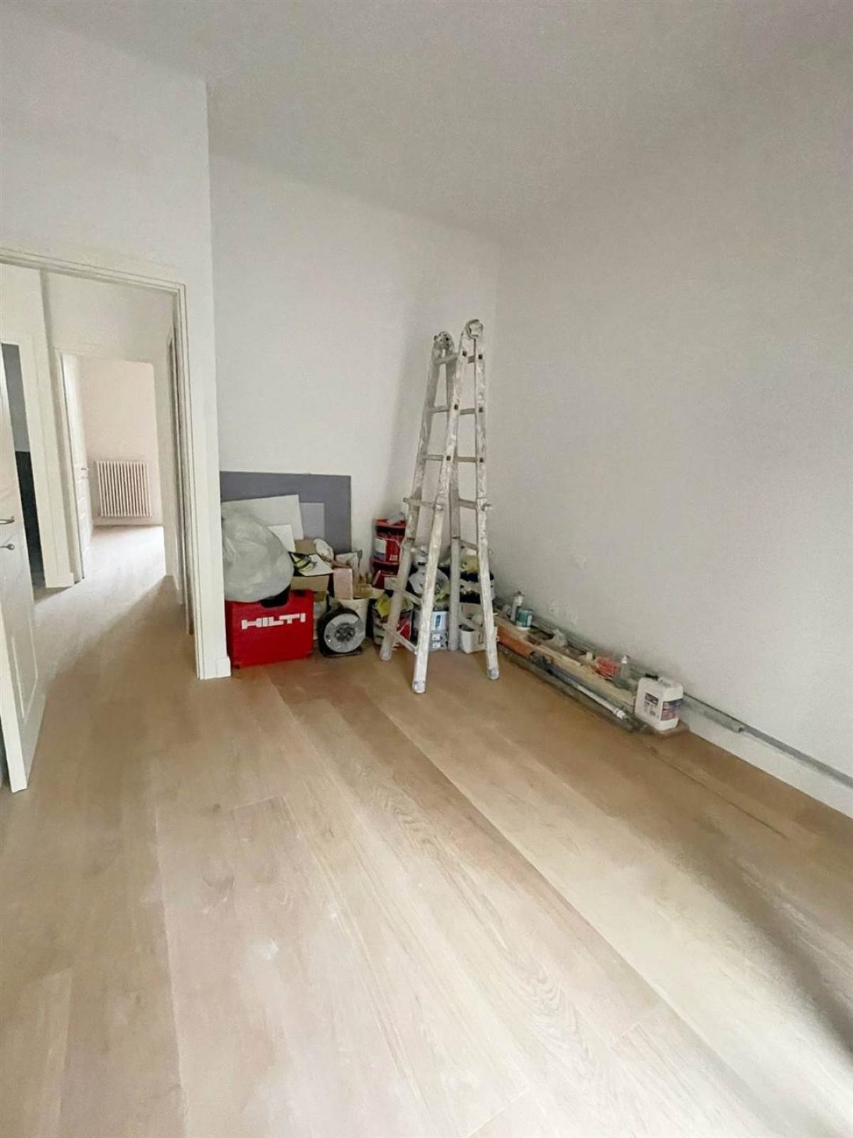 The entrance opens into the living area, featuring a compact yet practical kitchenette and a bright living room. The sleeping wing comprises two spacious double bedrooms, each with its own private bathroom. Modern finishes include parquet floors, thermal-break windows, and brand-new systems.