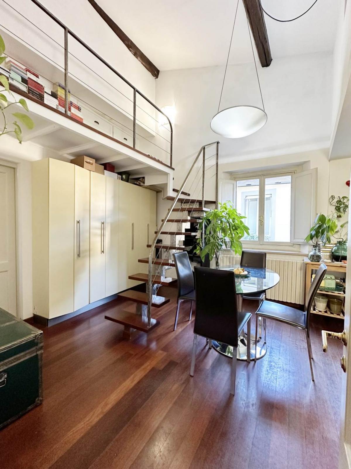 in the heart of Florence's historic center, just steps from the exclusive Via Tornabuoni and the Duomo, we offer for sale a bright and elegant apartment of approximately 75 sqm. Located on the third floor of a prestigious noble building, the property stands out for its refined and airy layout. The entrance leads to a cozy living room and a well-organized eat-in kitchen. The bathroom is windowed, ensuring excellent natural ventilation. An internal staircase leads to the mezzanine level, which houses the master bedroom—an intimate and private space. A significant added value is provided by the two accessible attic spaces, reached directly from the apartment via a convenient retractable ladder, ideal for storage or archival use.