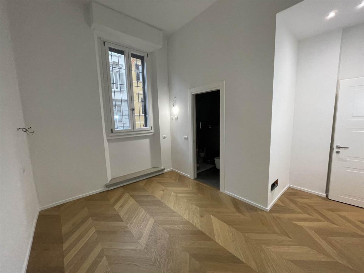 in an elegant early 20th-century building in the heart of Campo di Marte, we offer for sale a stunning 135 sqm apartment, completely renovated with top-quality finishes. The property is spread over two levels: the raised ground floor and the basement, connected internally but also featuring a double independent entrance. The main floor offers a large open-plan living area integrating the lounge, kitchen, and dining area, two spacious double bedrooms, and two finely finished bathrooms. The lower floor houses a large tavern consisting of two rooms (ideal as a second living area or guest bedroom) and a convenient service bathroom. The interiors are enhanced by oak parquet flooring laid in a French herringbone pattern and high-level materials throughout.