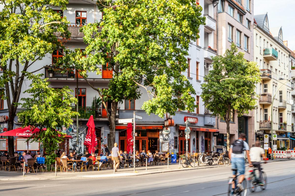 Located in East Berlin, Friedrichshain is a lively and trendy district reminding of Berlin's Soviet past of the city. The Karl-Marx Allee, linking Alexanderplatz to Frankfurter Tor, offers a striking example of Stalinist architecture with its impressive dimensions. It is also a verdant area, especially the Volkspark, famous for its barbecue areas and the outdoor cinema. The area many shops, bars and restaurants around the Boxaghener Platz, famous for its flea market. The RAW, a cultural and alternative place, consists of former hangars converted into workshops, restaurants, sports halls, bars and clubs. Along the Spree, the former Berlin Wall has become an open-air art gallery, the East Side Gallery, hosting paintings by international artists. For several years now, this area has been experiencing real estate expansion. Several international companies, including Zalando, have established their headquarters in the neighbourhood.
