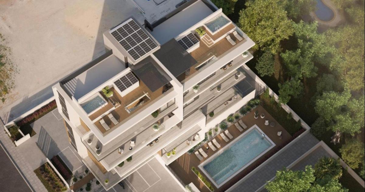 Aesthetically pleasing to the eye, this laconic development of 12 luxury and spacious one- and two- bedroom apartments, including 3-bedroom penthouses with private pools on the roof terraces, residing on a large plot of 1481 m2, offering incredible panoramic views. Whole residence has been designed incorporating the finest materials and will be built with high quality specifications including communal swimming pool, barbecue area, covered and uncovered parking areas, storage area, an electric vehicle charging point and green areas.