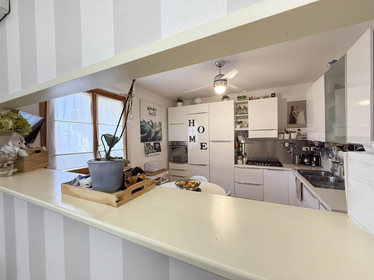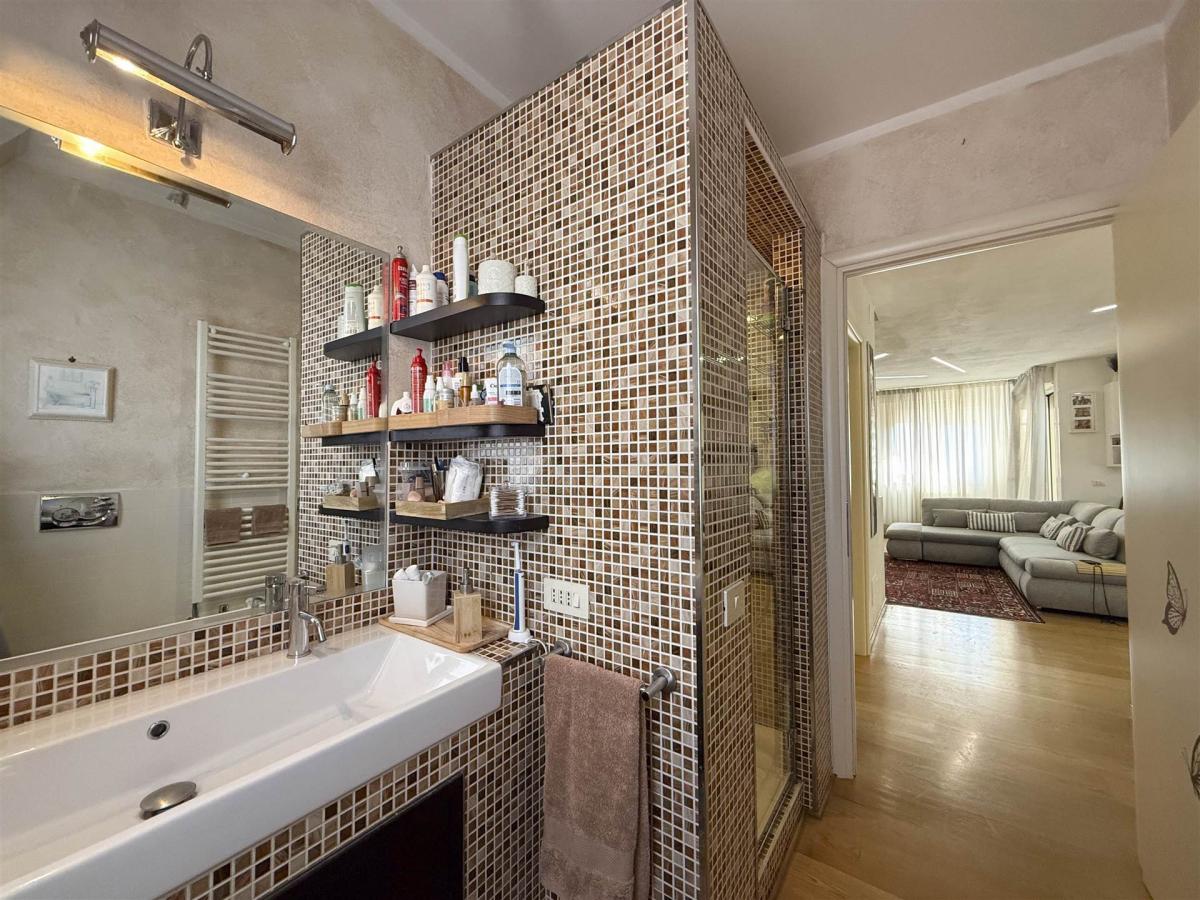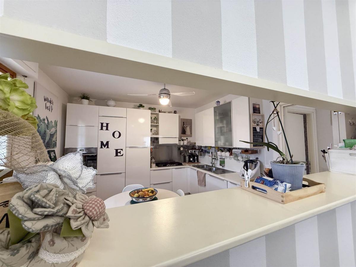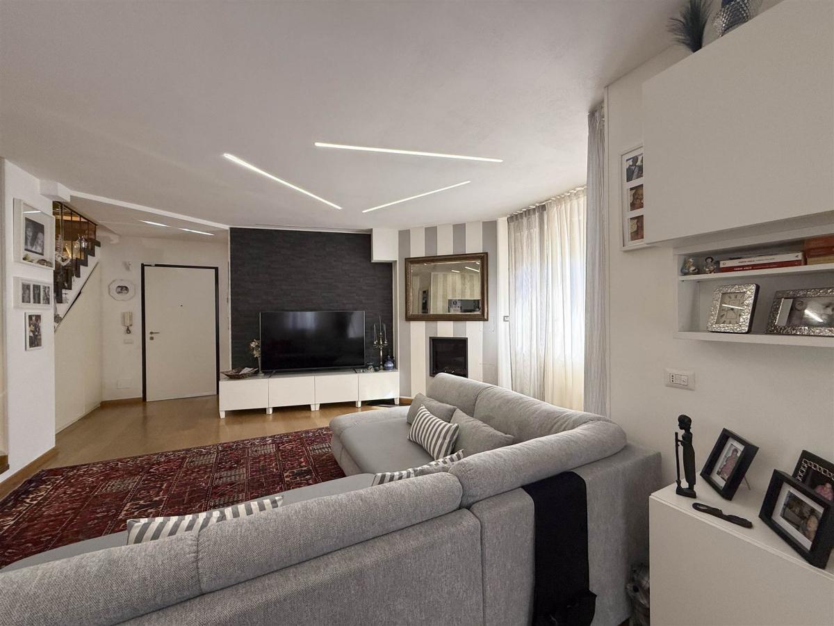 The apartment is located in a quiet street, in a prime location on the top floor of a building with an elevator. The large corner terrace and the panoramic terrace on the upper floor provide stunning views and outdoor spaces to enjoy the tranquility of the surrounding area.