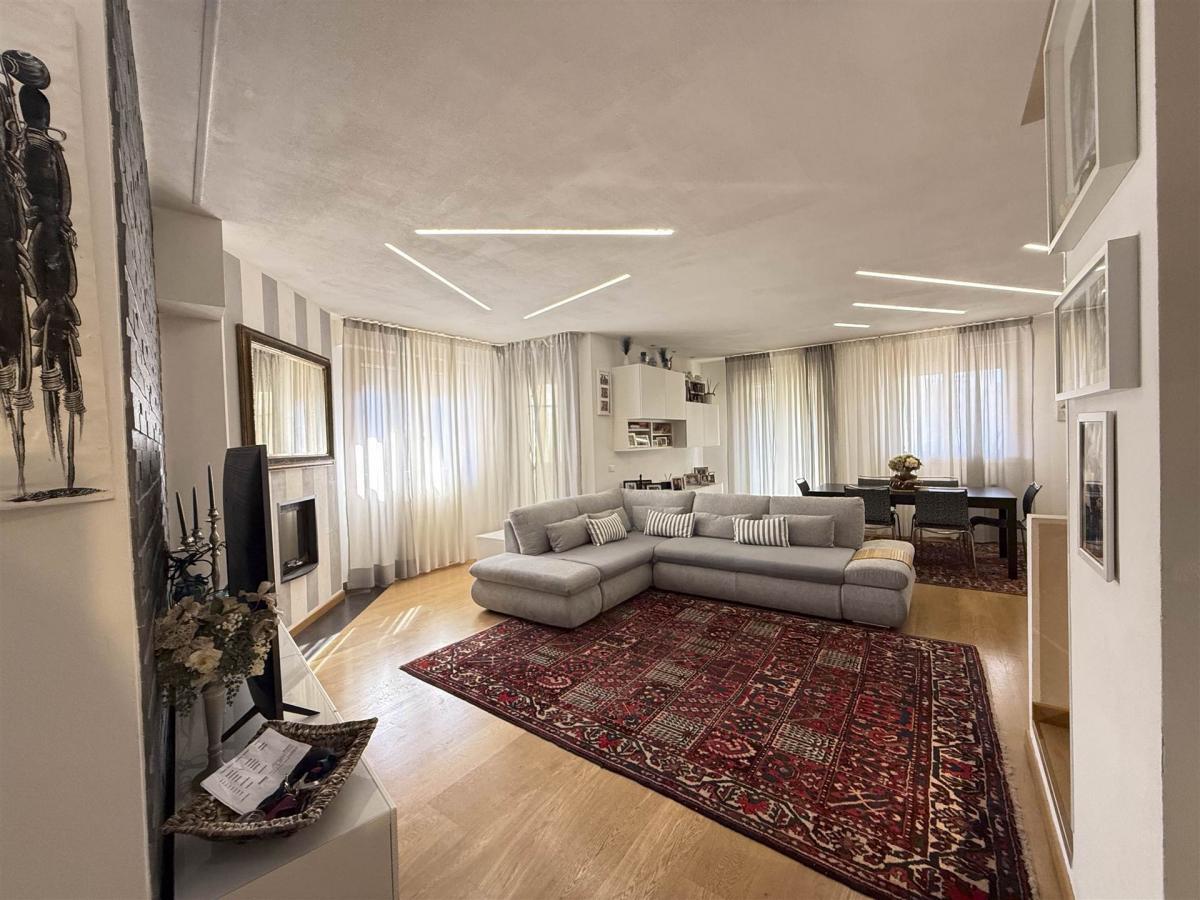 The apartment is located in a quiet street, in a prime location on the top floor of a building with an elevator. The large corner terrace and the panoramic terrace on the upper floor provide stunning views and outdoor spaces to enjoy the tranquility of the surrounding area.