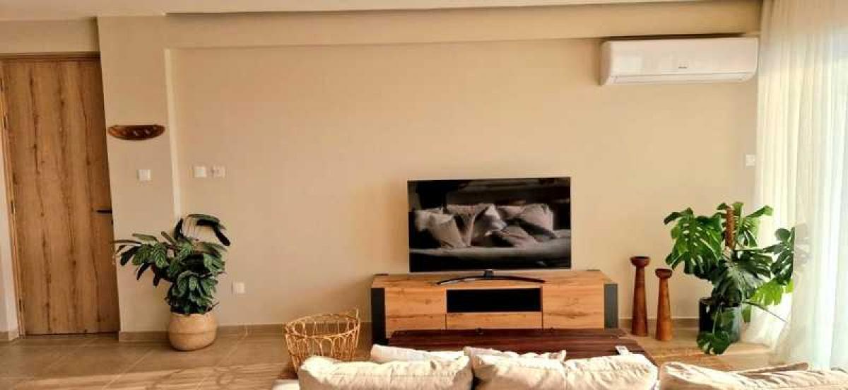 The apartment also comes with dropped ceilings, LED hidden light in the living room and kitchen, a 55-inch LG TV, and Gree air-conditioning in all rooms which provides hot and cold filtered air if you wish to have an all-day stay in. The apartment is on the fifth floor of the building which has an elevator and ample parking if required. The kitchen is fully equipped with brand new appliances (fully hidden) such as a large refrigerator/freezer, Siemens hob cooker, Siemens oven, Bosch washing machine, and Bosch dishwasher. The bathroom provides a towel heater along with a very spacious shower and a high-pressure shower head. The bathroom also has a mirror with LED hidden lighting.