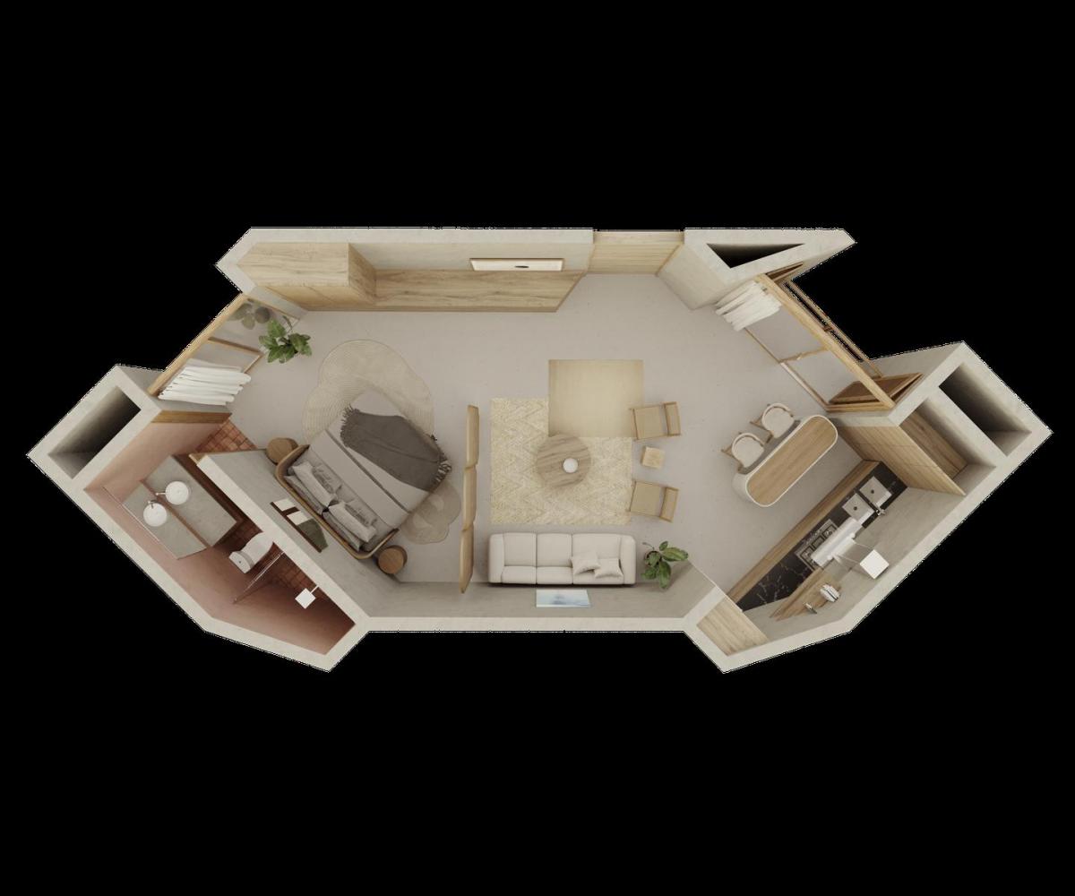 Each apartment is designed to maximize natural light, spaciousness, and functionality, using materials such as wood, stone, and chukum for durability and elegance.