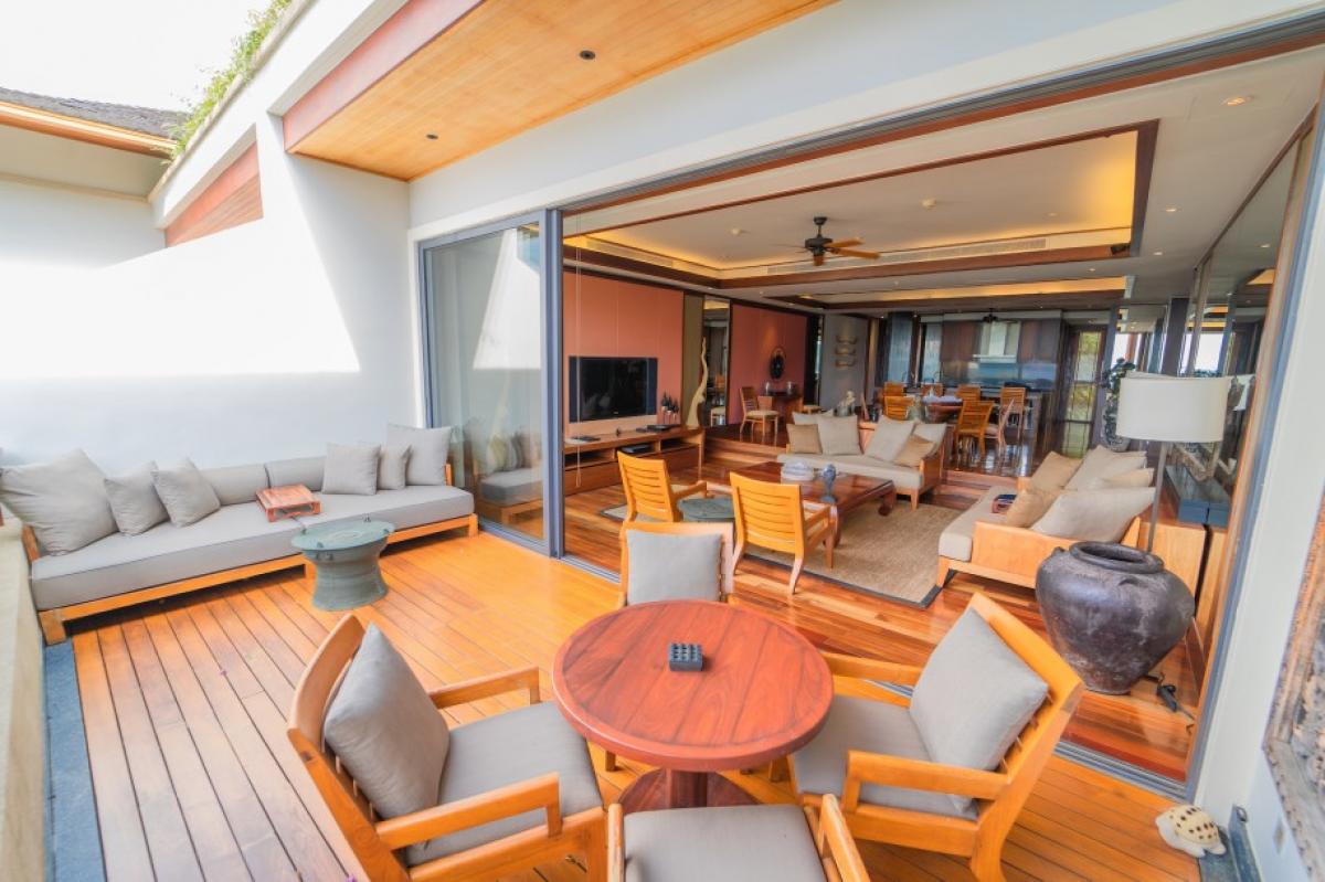 This wonderful apartment offers a unique blend of luxury and comfort, featuring a private terrace with stunning sea views. As part of a prestigious 5-star luxury branded resort, residents enjoy access to an array of top-notch facilities, including a 40-meter swimming pool, an 8-person Jacuzzi, cabanas, a cocktail bar, a modern day spa, and a high-tech gym with personal trainers. For those who appreciate fine dining, there's an on-site restaurant, and exclusive super yacht charters are also available for an unforgettable experience.Property Features: Features an open-plan living area that seamlessly integrates style and functionality. The layout includes a beautifully crafted Thai-style wood table and chairs, perfect for enjoying meals in a warm and inviting atmosphere.