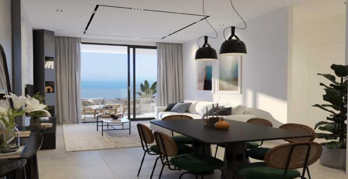 This modern 2 bedroom apartment offers breathtaking panoramic views of the Mediterranean's azure waters. Wake up to the tranquil sight of the shimmering sea, 600 meter walking distance to the beach making each day feel like a peaceful retreat. This modern complex blends luxury, accessibility, and sustainability. Designed for comfort and eco-conscious living, these thoughtfully crafted homes harness renewable energy for a greener lifestyle. Enjoy the perfect balance of serene coastal living with easy access to the city's vibrant energy. Experience the best of both worlds—where the beauty of the Mediterranean meets modern, sustainable luxury.Reference number: 9027