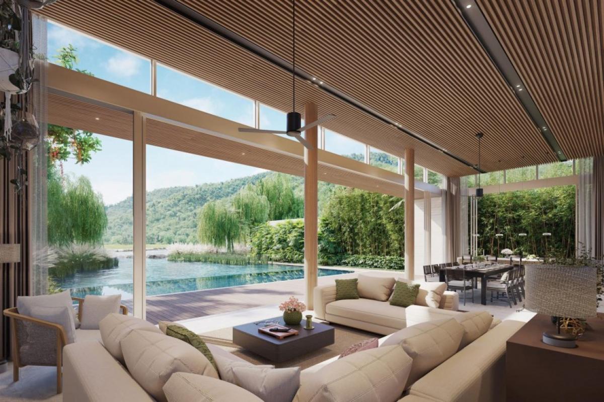 The single-storey 3+1 bedrooms luxury villas developments all offer panoramic vistas of the surrounding mountains and untouched UNESCO heritage wilderness. Designed as private sanctuaries where nature interlaces with rooms, all pool villas feature 'disintegrated wall' elements to blur the boundaries between indoor and outdoor spaces. Doors in the large living room slide open to face the private pool, from lawn, and lake, emphasizing the horizontality of the scenery.
