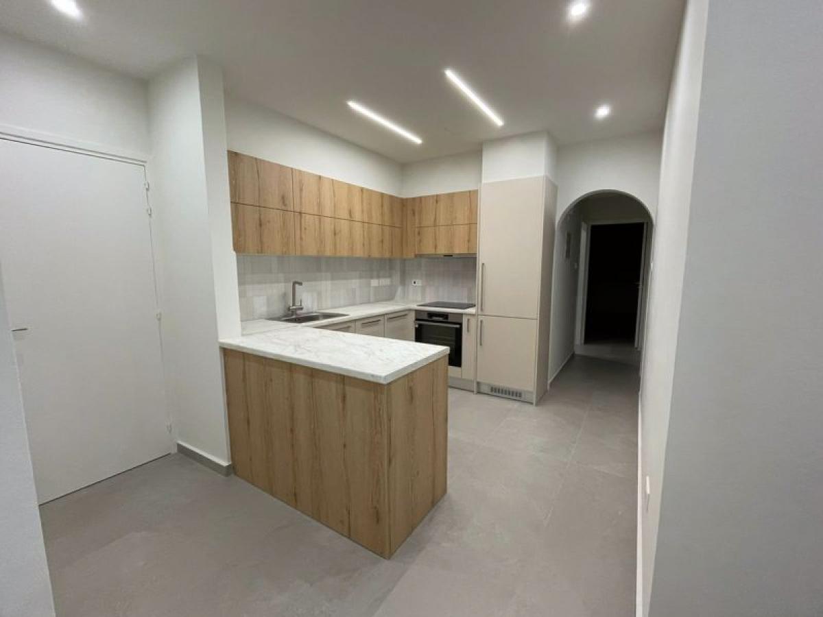 The apartment is within a short distance from the sea, close to all amenities and services. The gated entrance opens into the small garden area with steps up to this apartment. The traditional entrance door opens into the grand living room with a nearly renovation. A door to the right leads you to an open-plan brand-new kitchen.