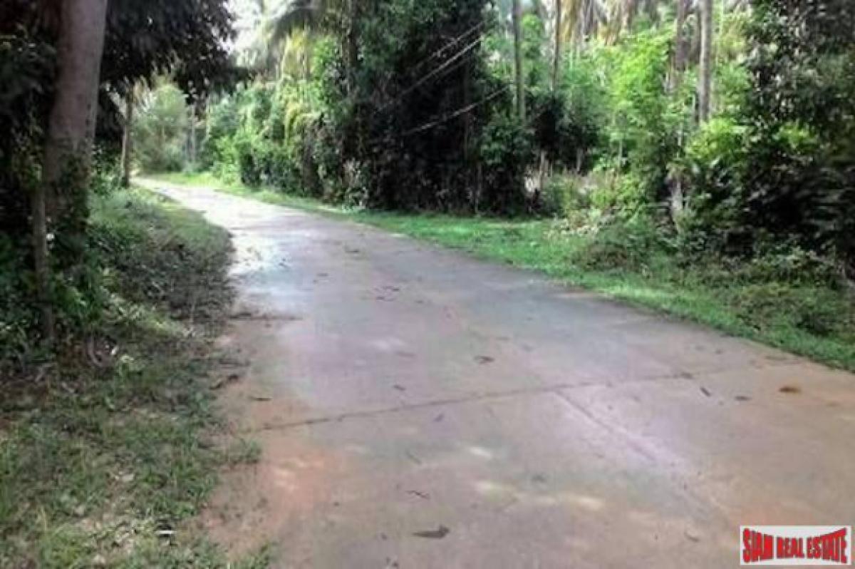 Phang Nga Bay views from this large 9,818.4 sqm land plot on tropical Koh Yao Noi. 6.0.54.6 Rai. The land faces southwest and has very nice views of the bay and the outlaying islands. This is a flat land plot with mature coconut trees. Manoh Pier is nearby, only a 10 minute drive.There is a concrete access road to the property and utilities available are electricity and government water.