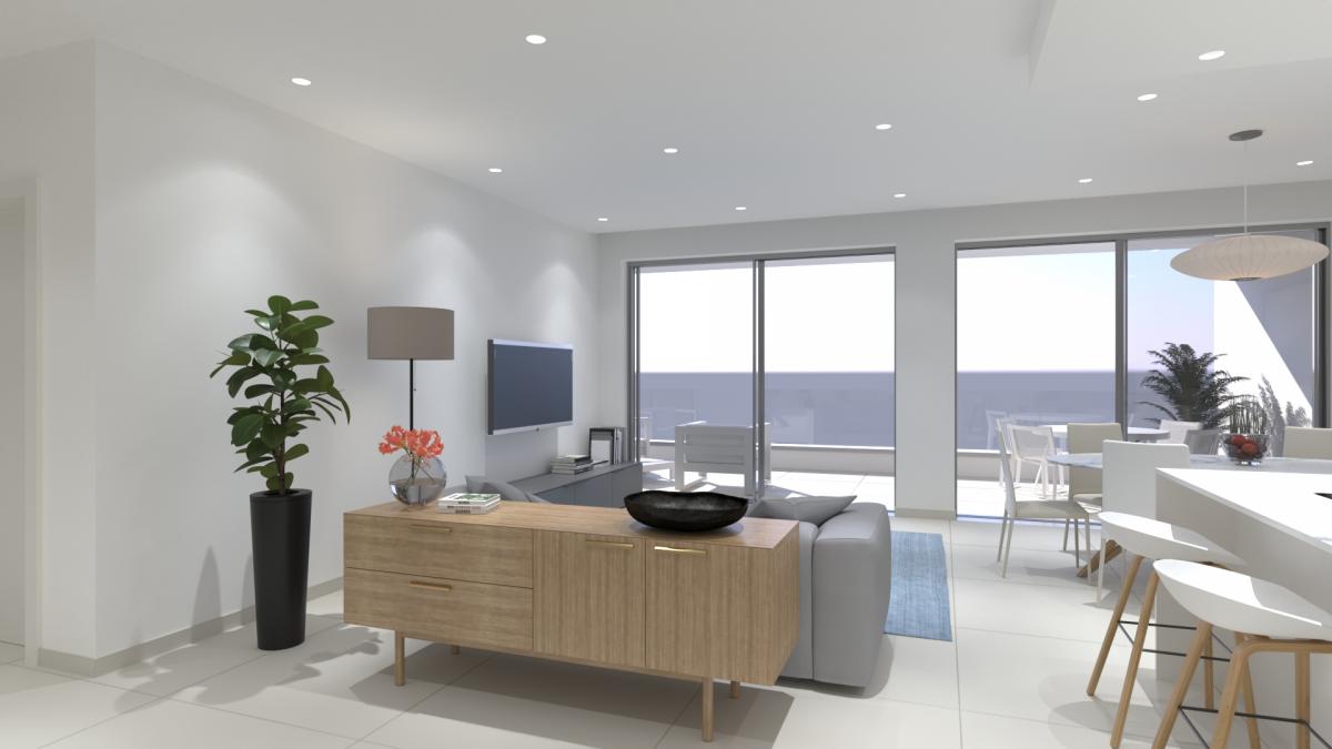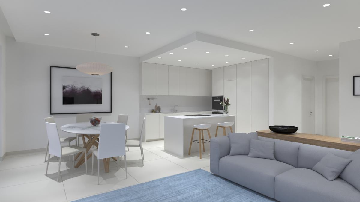 The apartment has a spacious balcony and comes fully equipped with various amenities, such as air conditioning, underfloor heating, solar panels for hot water, central sound system, high-speed Fibre internet, double glazed windows with electric roller blinds. The apartments are also designed to have an energy rating of A.