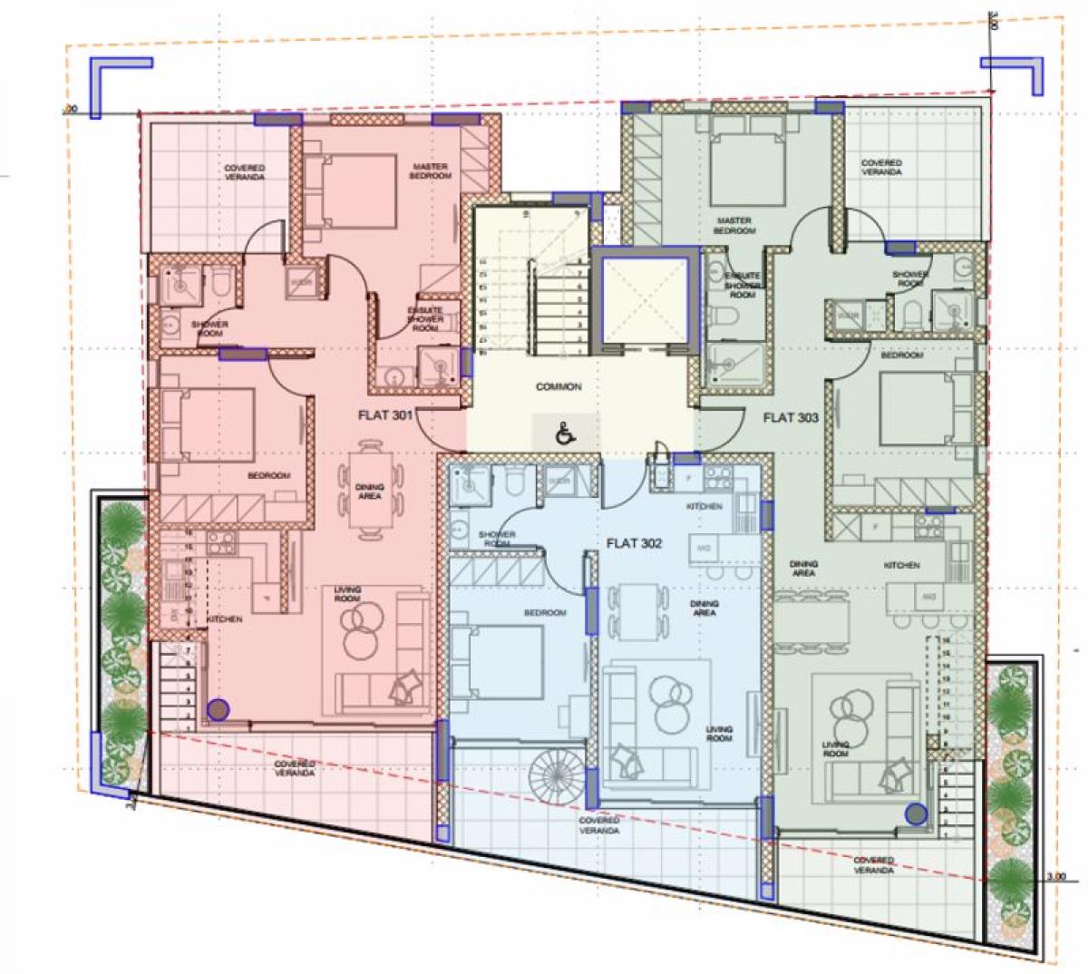 The Project is a 3 storey development comprising 9 units. The project has a selection of 1 and 2 bedroom apartments including 3 duplex penthouse apartments. This luxury development offers city center living at its best within walking distance to schools, supermarkets, the cinema and you can enjoy the quietness of the Center while being a part of it. Project is located in the heart of Larnaca and is only a 10 minute drive to Phinikoudes promenade and the beach (Blue Flag).