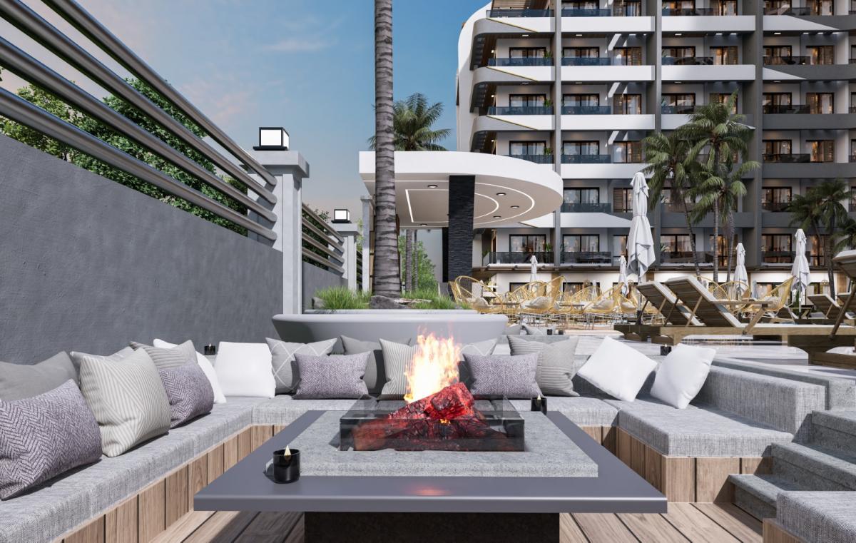 Spanning an area of 8000 m2, the complex features a single 13-floor block comprising 247 apartments with diverse layouts, including studio, 1+1, and 2+1 options, some with private gardens. The infrastructure boasts indoor and outdoor pools, children's pool, sauna, Turkish bath (hamam), mini club, fitness center, air conditioning in every room, CCTV, video intercom, and a private beach with a bar.