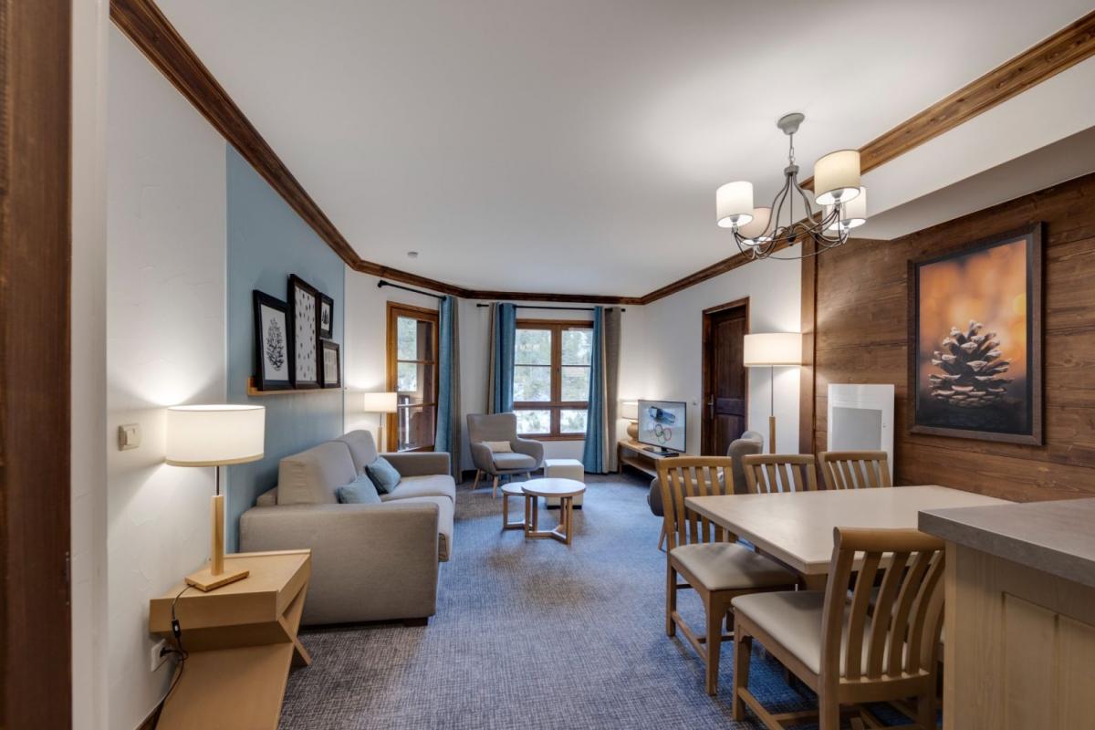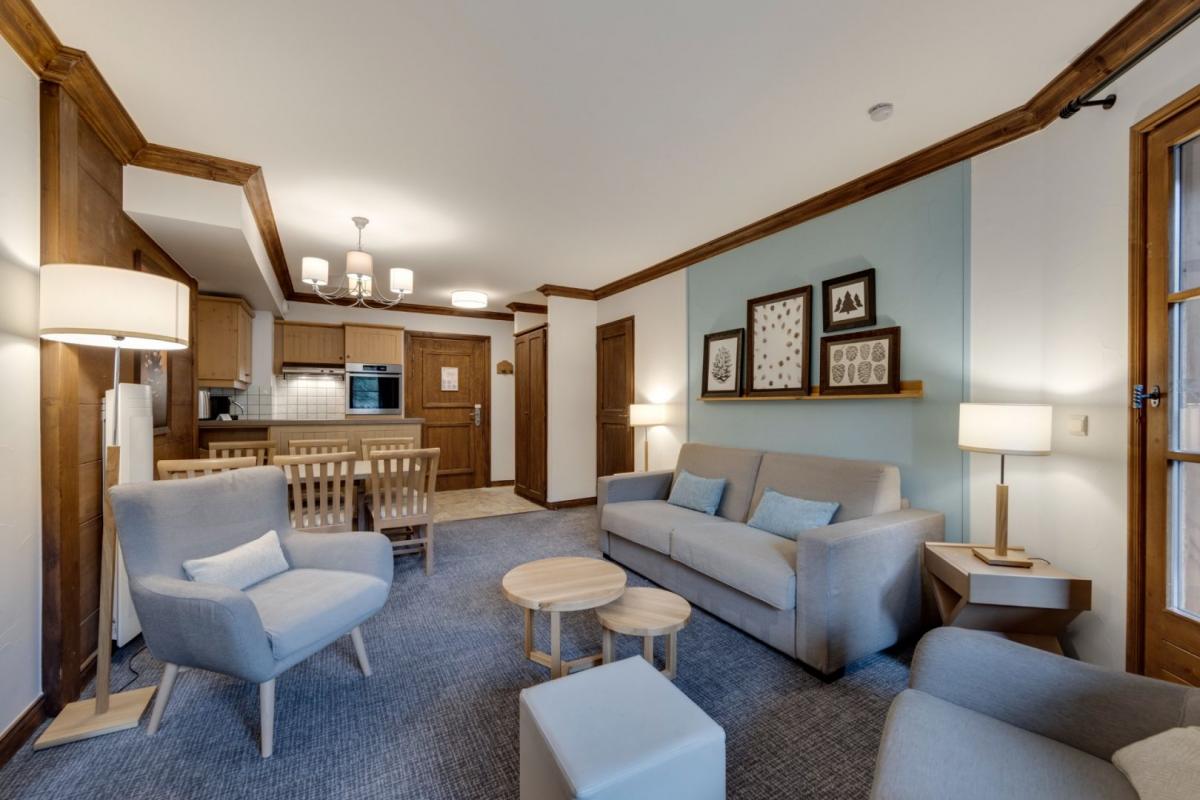 Located in the Manoir Savoie residence, in the heart of Arc 1950 Le Village, you will be charmed by this lovely three-room apartment. This property, with its modern and tasteful decor, comprises a spacious living area with a fully equipped kitchen, two bedrooms, two bathrooms, and a balcony offering unobstructed views of the Aiguille Rouge. Sold fully furnished and with a cellar, it also includes a ski locker and a covered parking space. After a day on the slopes, you can relax in the residence's wellness facilities, including the heated outdoor pool with breathtaking views of Mont Blanc. Property is under Pierre & Vacances Premium rental management until April 2028.