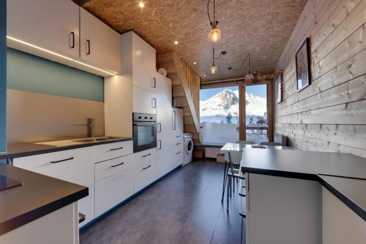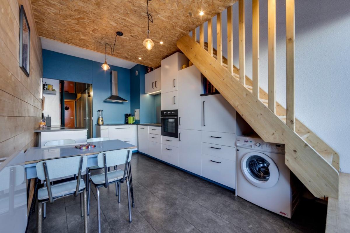 Located on a high floor of a quiet residence in Arc 2000, just a few steps from the ski slopes and close to the resort's shops, this duplex apartment has been fully renovated recently. The layout is thoughtfully designed to comfortably accommodate up to 6 people! it features a spacious entrance with a closet, a 'coin montagne' (bunk area), large storage spaces, a living area with a fully fitted and equipped open kitchen, and a bathroom with a large shower. Upstairs, there is a convertible lounge that can be used as a bedroom, as well as a double bedroom with storage. Facing west, this property enjoys plenty of natural light and offers lovely views of the Arc mountains!