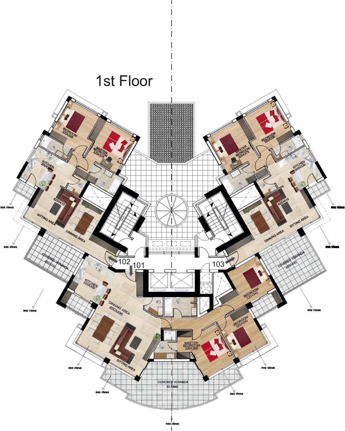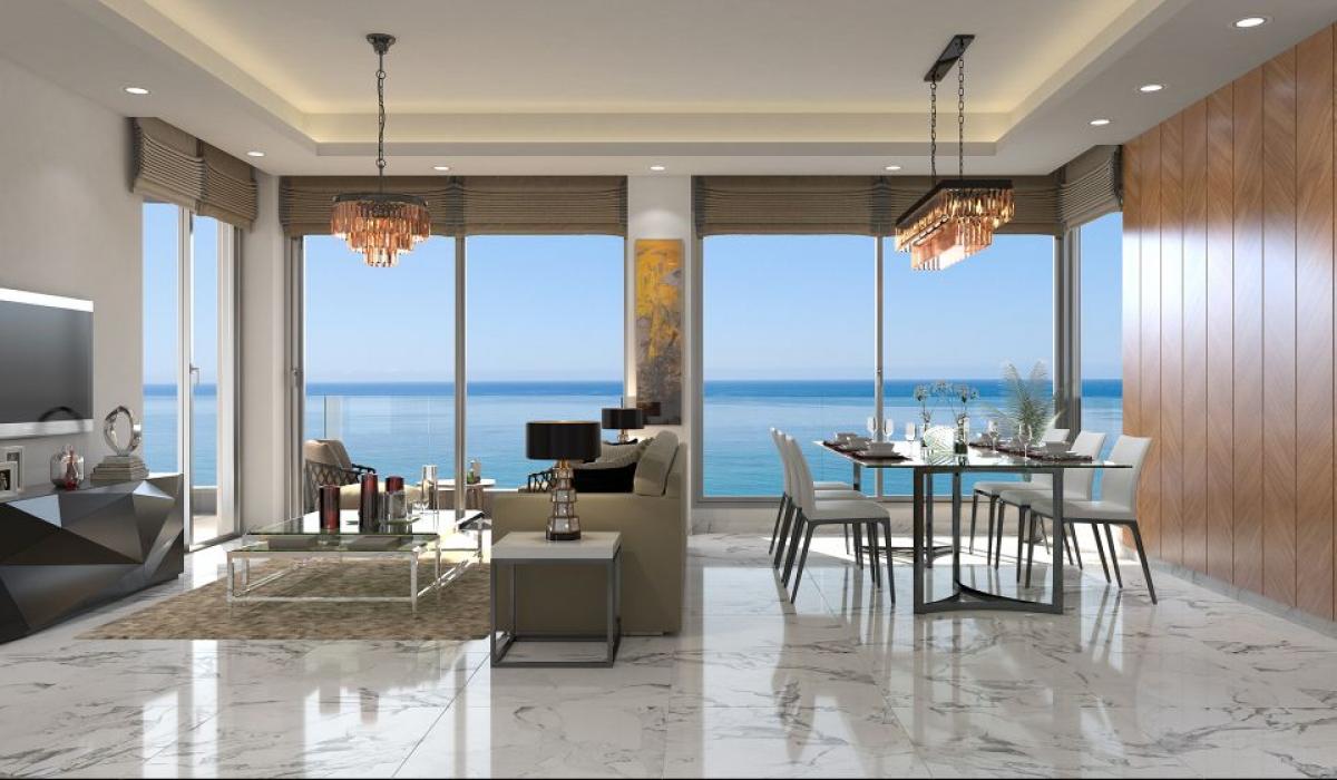 This newly completed eye-catching high-rise offers sweeping views of the coast and sprawling city of Limassol. The 11-floor reinforced concrete structure, clad in glass and marble, features spacious, modern two and three-bedroom residences, including two three-bedroom penthouses, all with uninterrupted sea views. The building's front entrance opens out to the azure coast of one of Limassol's many Blue Flag beaches, whilst the neighboring area is host to the city's buzzing shopping and business hub. High-end shops, cafes, fine dining establishments and luxury hotels, as well as local schools, banks and other businesses, are all located within the vicinity.The 28 apartments of varying sizes are all carefully arranged to ensure generous proportions and utmost privacy, and are constructed and fitted with high-quality materials. The top floor boasts two three-bedroom penthouses, with their own private pools and lusciously landscaped roof gardens. Each apartment promises uninterrupted views of the coastline, thanks to the deep balconies that provide ample space for residents to create their own beachside oasis. All apartments include en-suite master bedrooms, guest washrooms, covered parking area, and basement storage space, while penthouse apartments also feature Jacuzzi bathtubs. Bedroom walls are covered with branded wallpaper and boast Roberto Cavalli Luxury Home tiles and Italian wardrobes. They are all fully equipped with automatic lighting, and the living areas, corridors and bathrooms are fitted with marble Monograph Design floor tiles with solid wood parquet in the bedrooms.