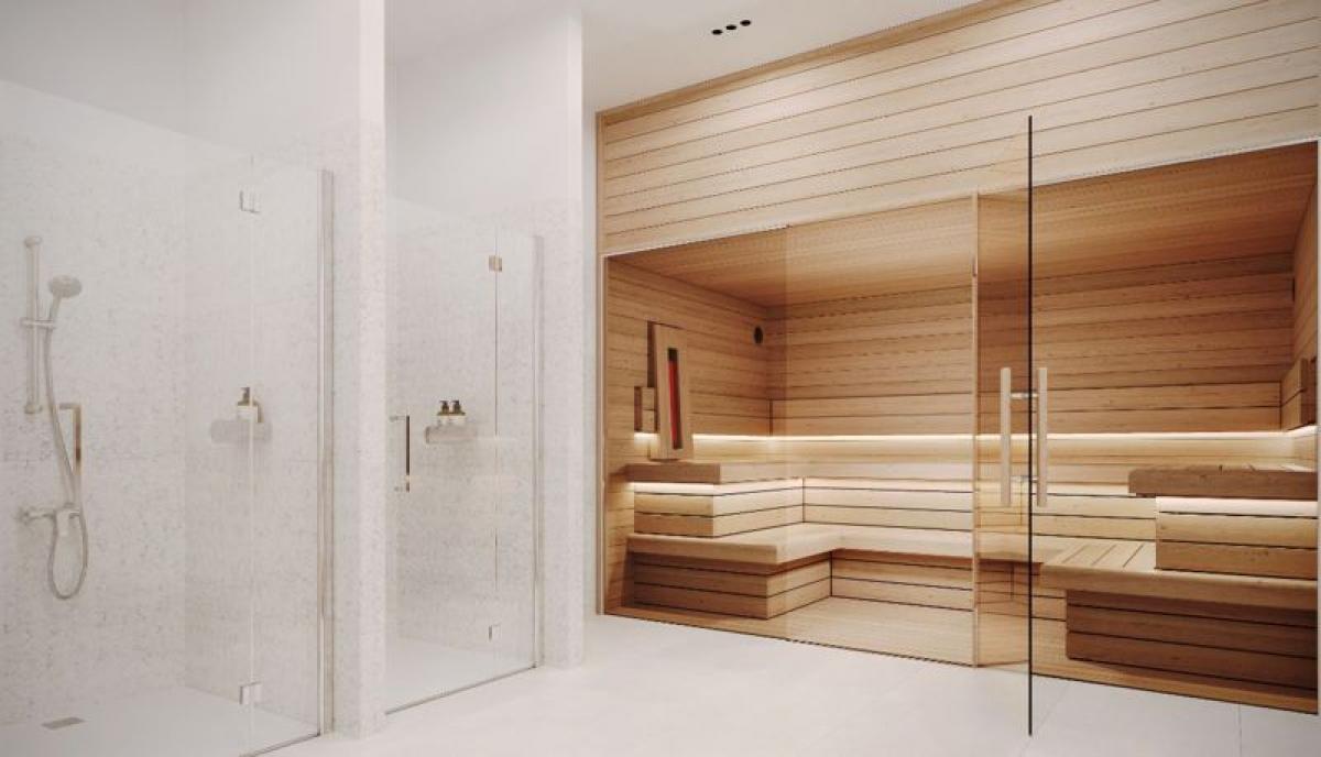 - Communal steam bath and sauna