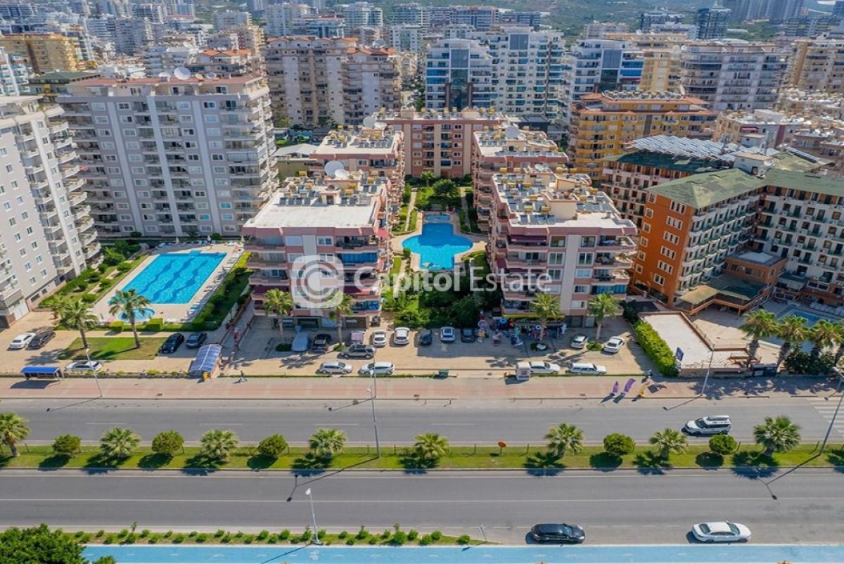 Located just 100m from the beach, this 3-bedroom apartment is ready to move in. It is furnished and equipped with white goods and has a direct sea view. A spacious outdoor pool is available on-site. The neighbourhood is 12km from the centre of Alanya and is comfortable both for vacation and residence, as all the facilities are within walking distance.* REF NR: 02458