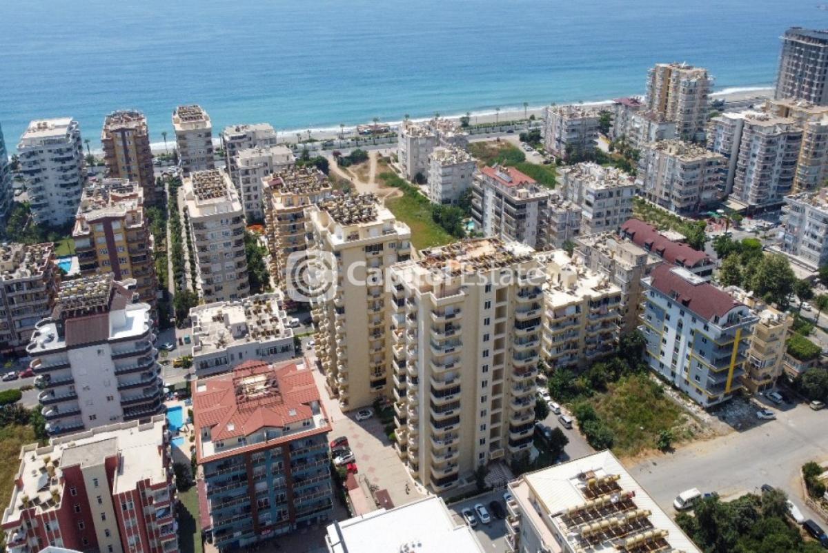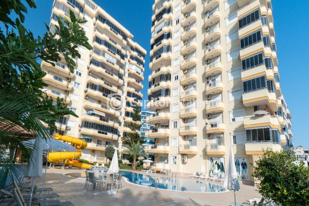 A fully furnished 2-bedroom apartment equipped with white goods is ready to move in. The apartment is located on the 10th floor and has a scenic sea view. The complex is just 200m from the beach and has such on-site amenities as a parking lot, an outdoor pool with waterslides, a gym, and a sauna. Mahmutlar is a well-developedand lively neighbourhood 12km from the centre of Alanya. All the facilities